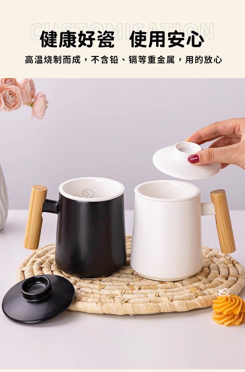 Taza de Té de Cerámica Casual, Taza de Separación de Agua y Té, Taza Personal para Hogar/Oficina con Filtro y Tapa, Taza Mug Personalización