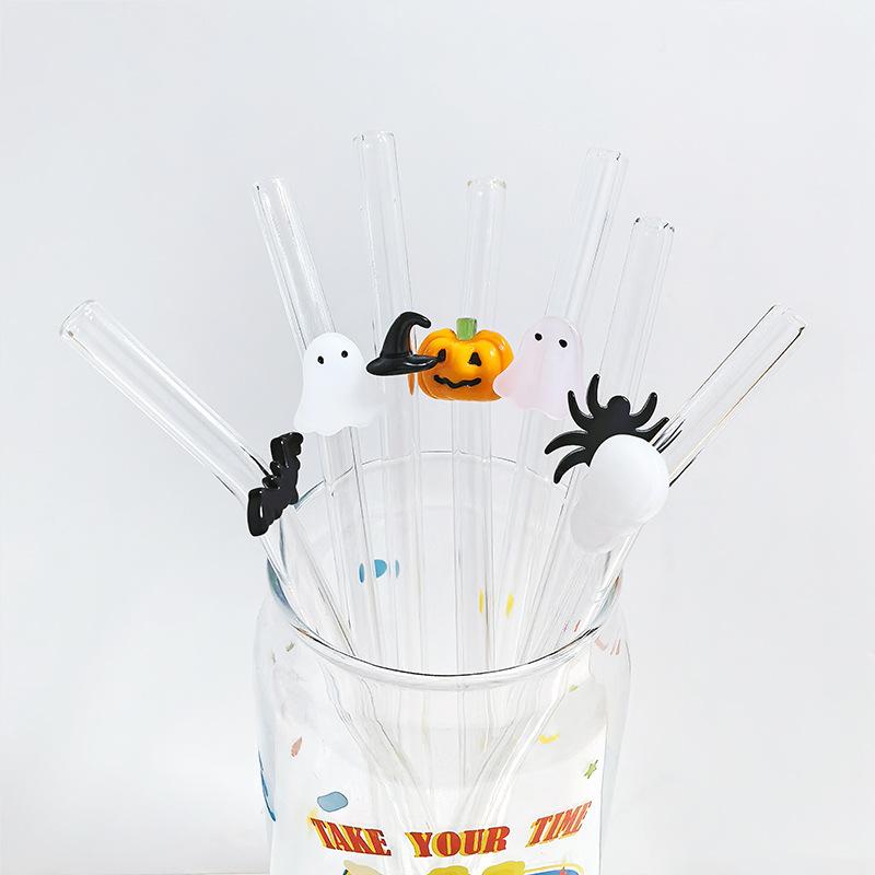 Popotes de Vidrio de Halloween Forma de Calavera Decoración Personalizada Set Combinado Transparente Fabricante de Origen Suministro Transfronterizo
