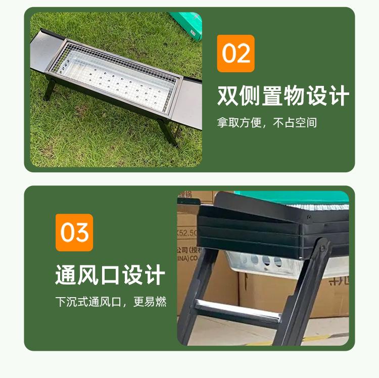 Parrilla para Camping al Aire Libre con Rejillas Laterales Plegables, Parrilla Multifuncional para Barbacoa para Uso Doméstico, Parrilla de Carbón Extraíble