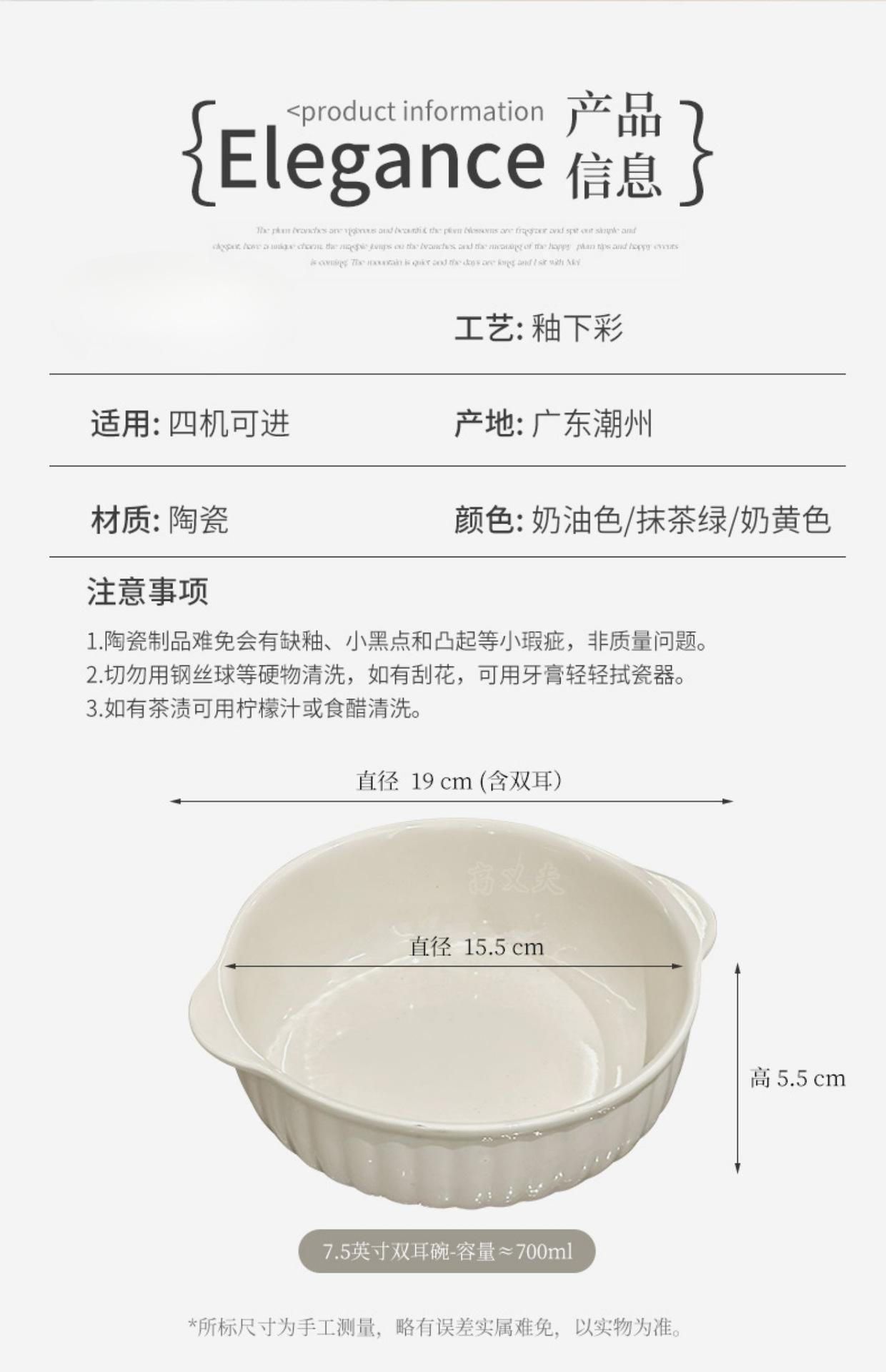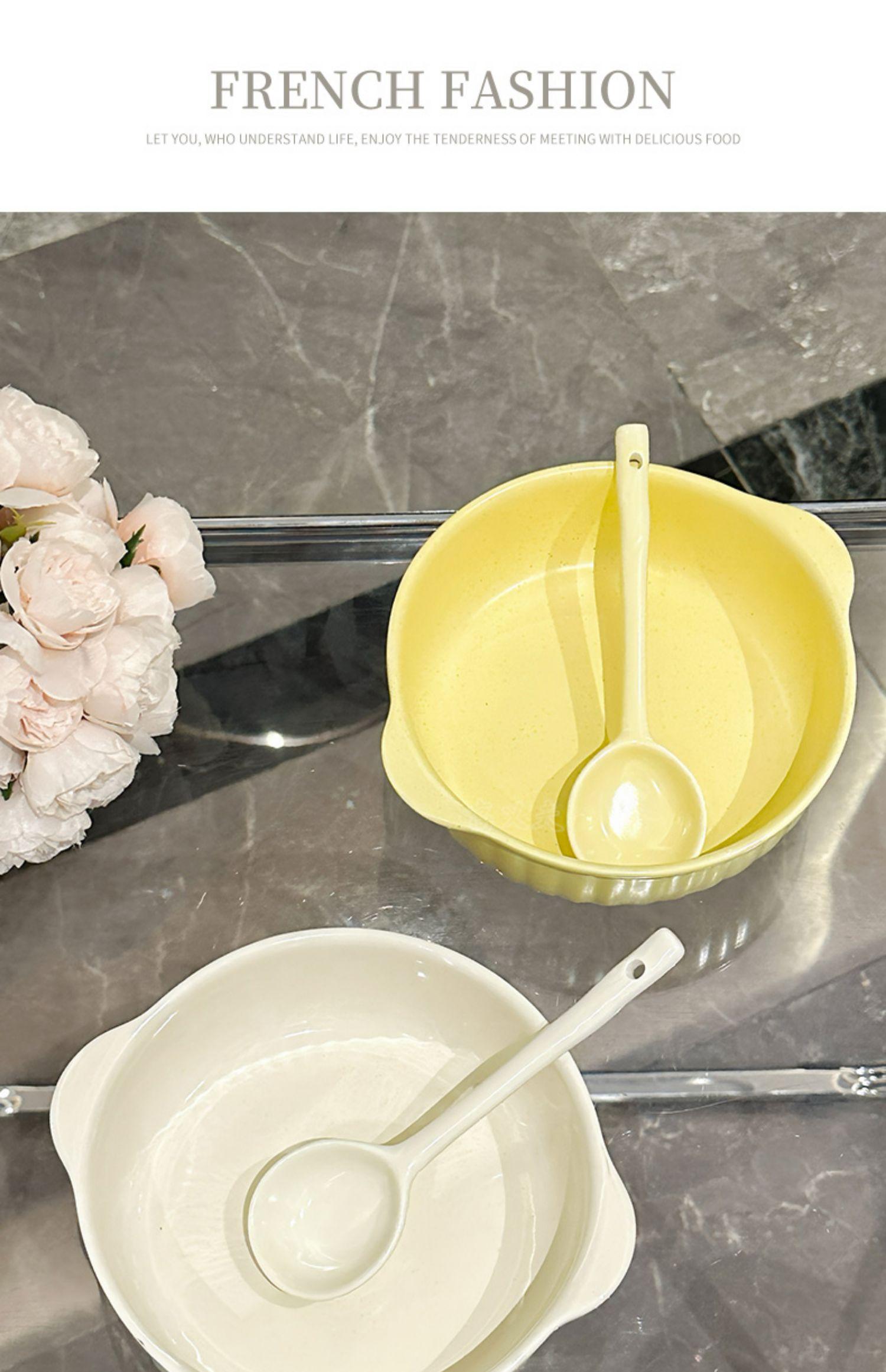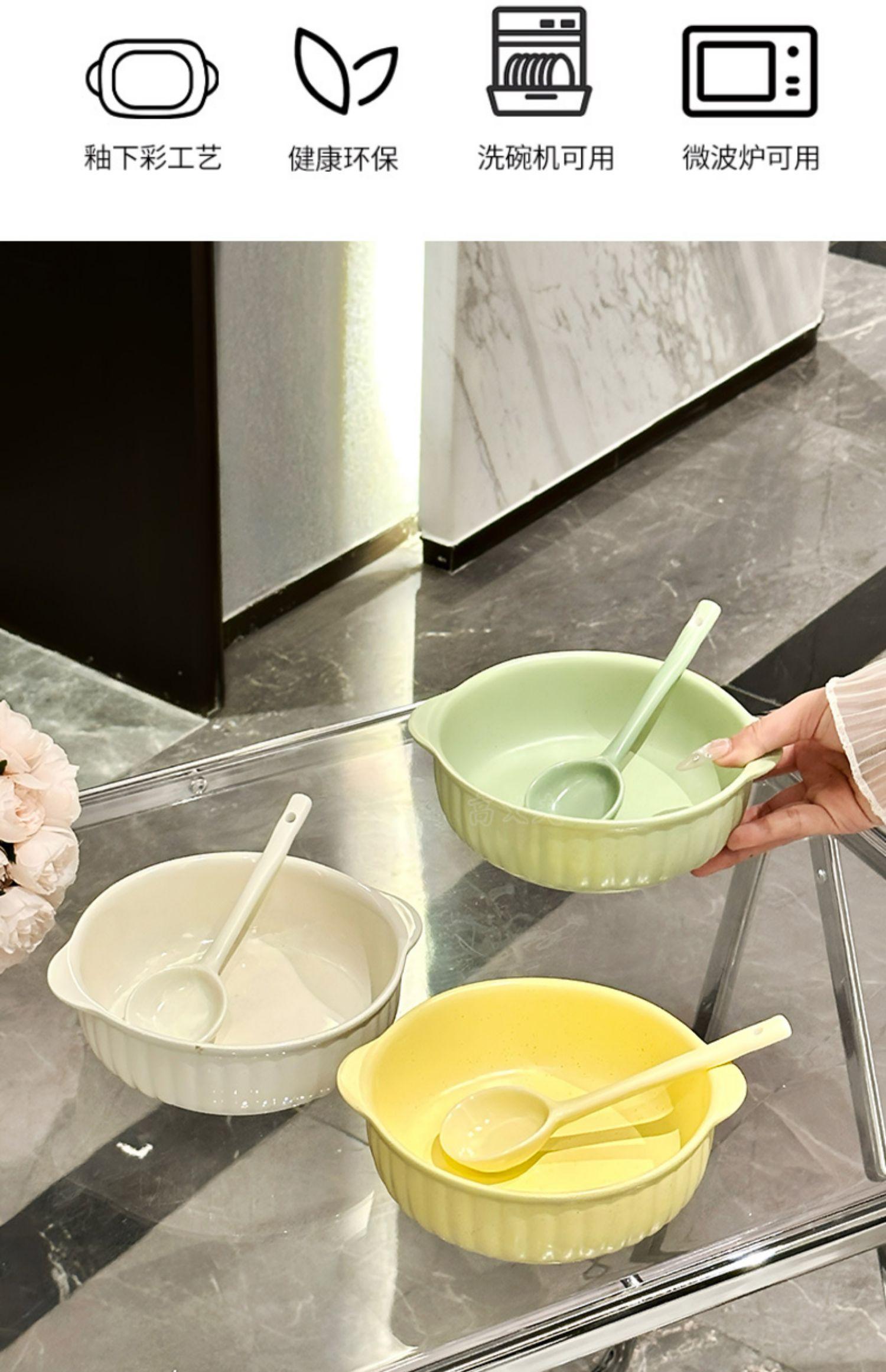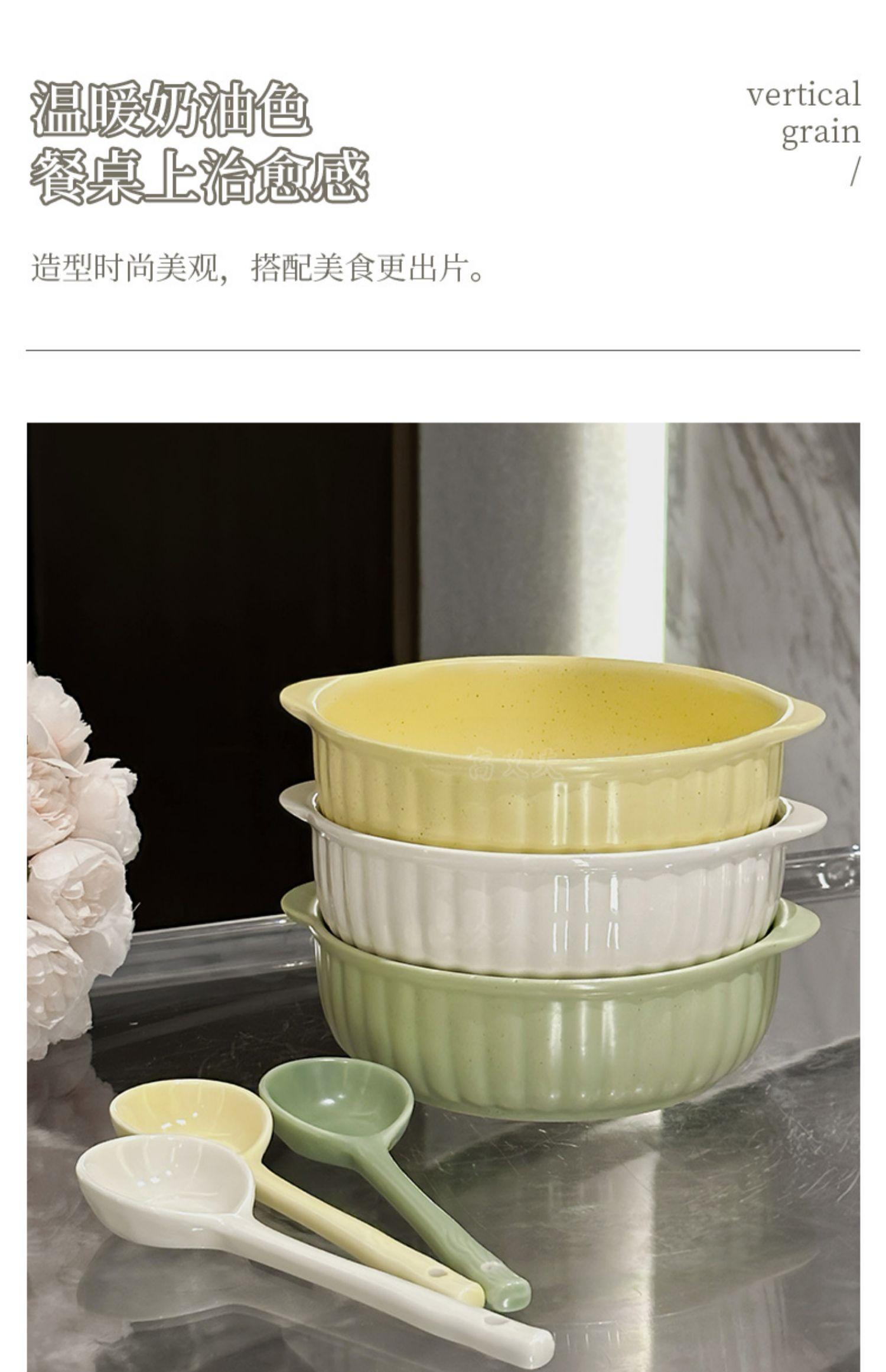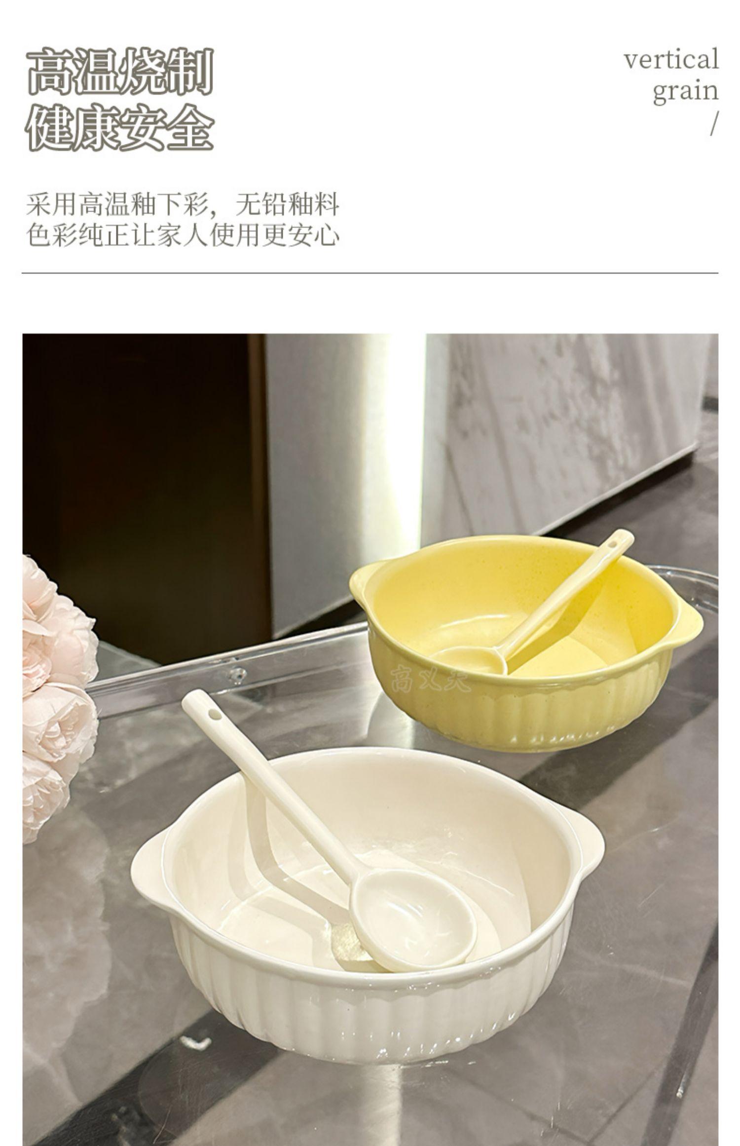 Tazón de Sopa Retro Tazón para Fideos de Doble Asa Vajilla de Cerámica Estilo Crema Ins Tazón para Arroz Tazón para Ensalada Tazón para Fruta 2024 Nuevo Estilo para el Hogar