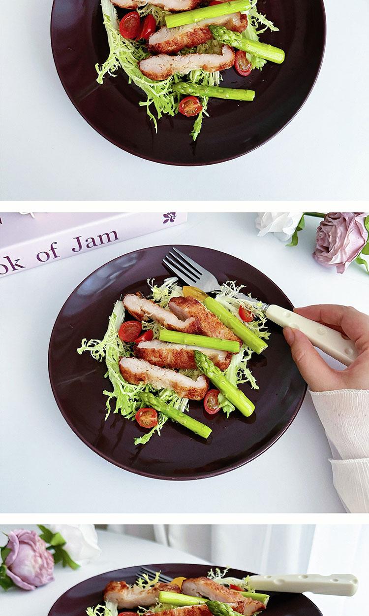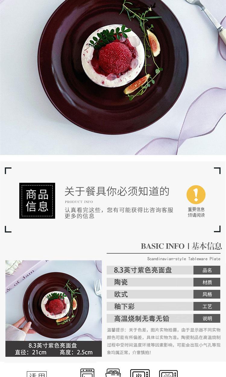 [6.99 Yuan por 2 Platos Morado Cereza] Plato de Cerámica Ins para Bistec Comida Occidental Plato para Ensalada Postre Defectos