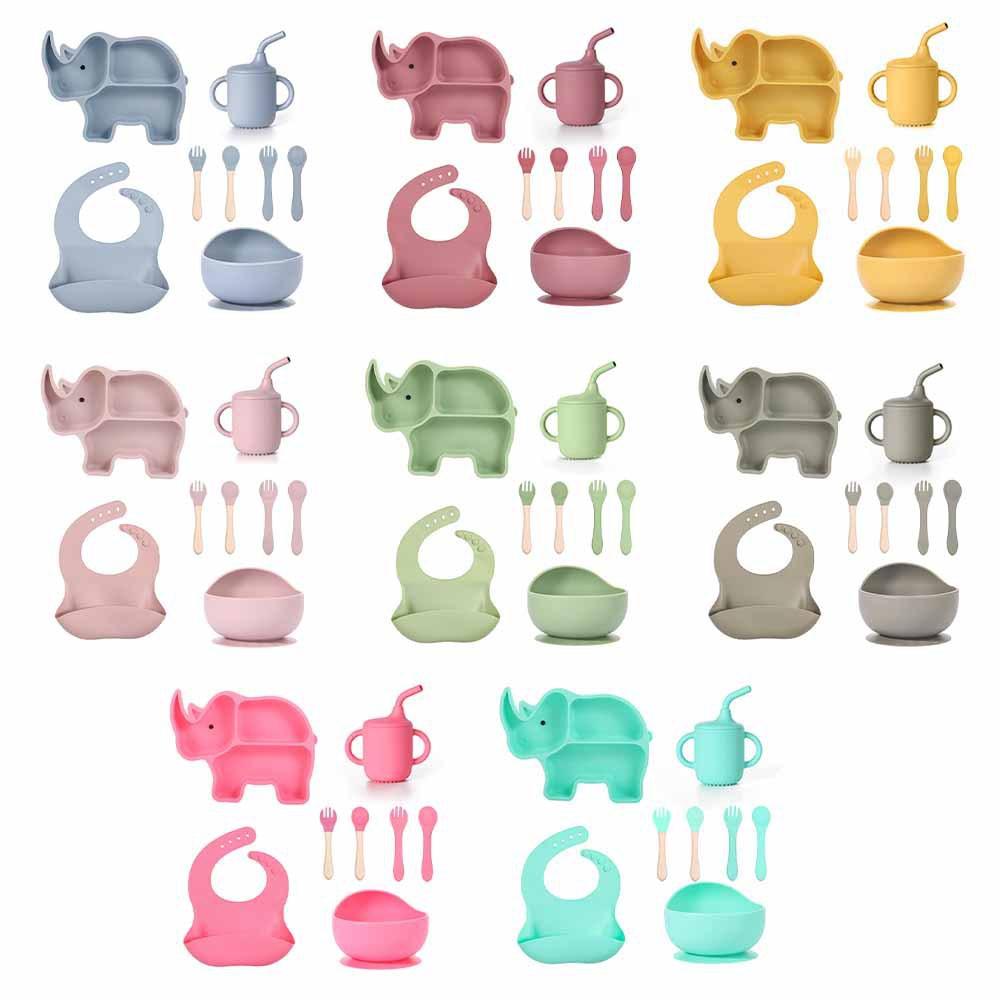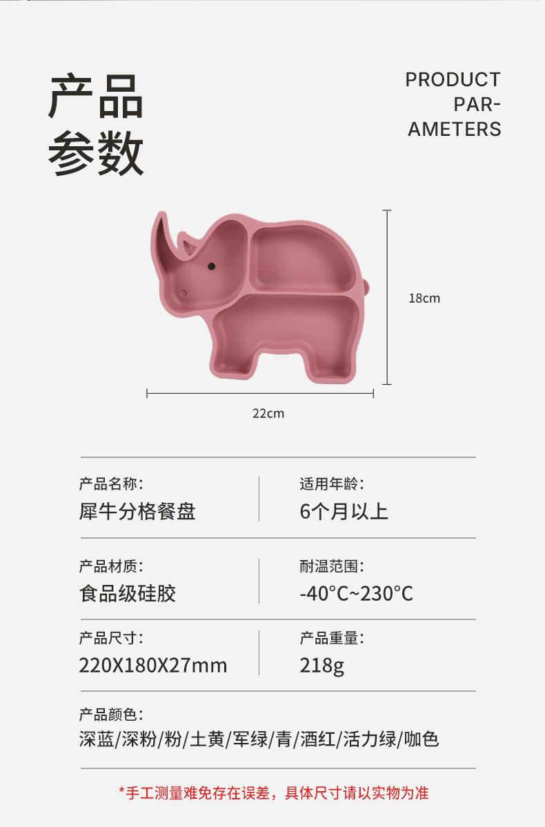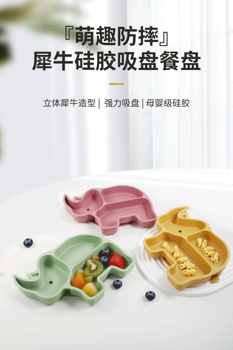 Set de Plato Dividido de Silicona para Niños Transfronterizo Set de Suplemento Alimenticio para Bebé Plato de Rinoceronte Set de Alimentación para Madre y Bebé