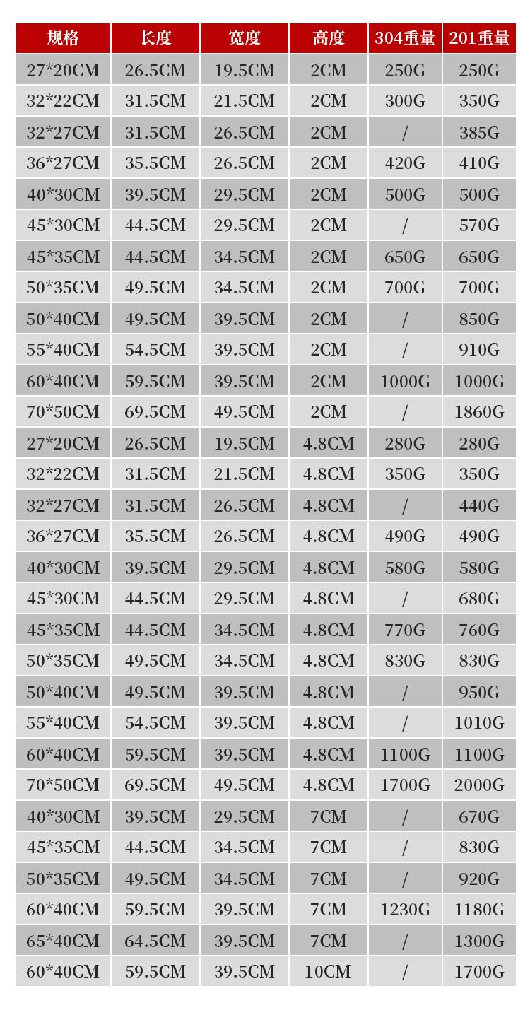 Extra thick 304 material: 27x20x2cm, Extra thick 304 material: 32x22x2cm, Extra thick 304 material: 36x27x2cm,...