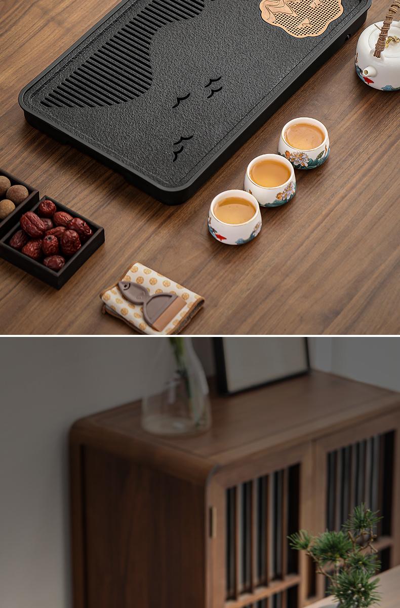 2【medium】qianli jiangshan crystal rock brick tea tray (dual-purpose storage and drainage)