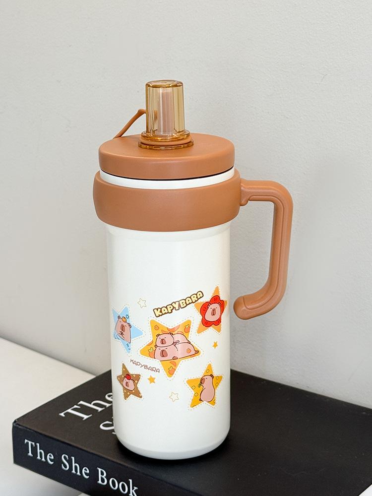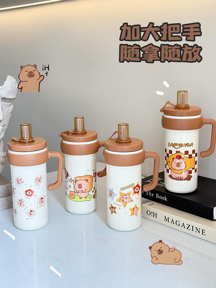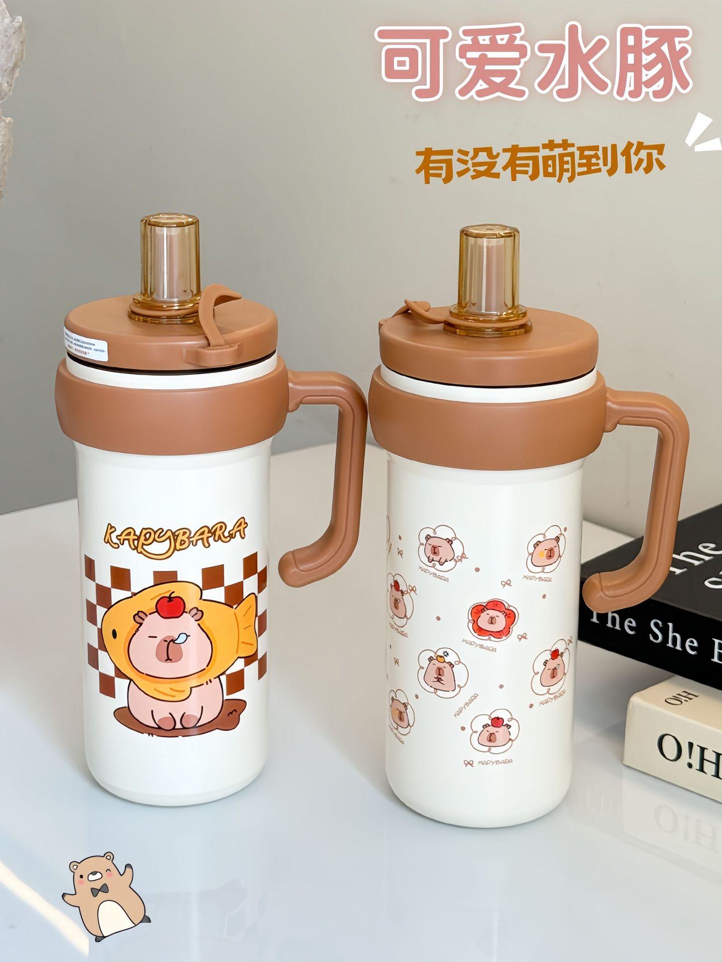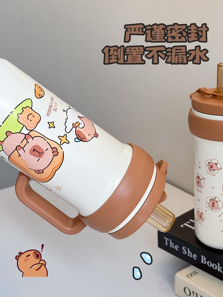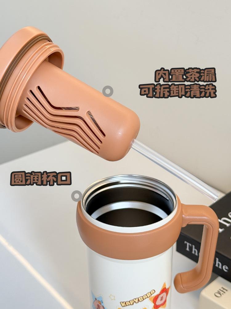 Nueva Taza de Café Portátil de Gran Capacidad de Alto Valor Dibujos Animados Acero Inoxidable 316 Aislada para Frío y Calor con Vaso con Pajita