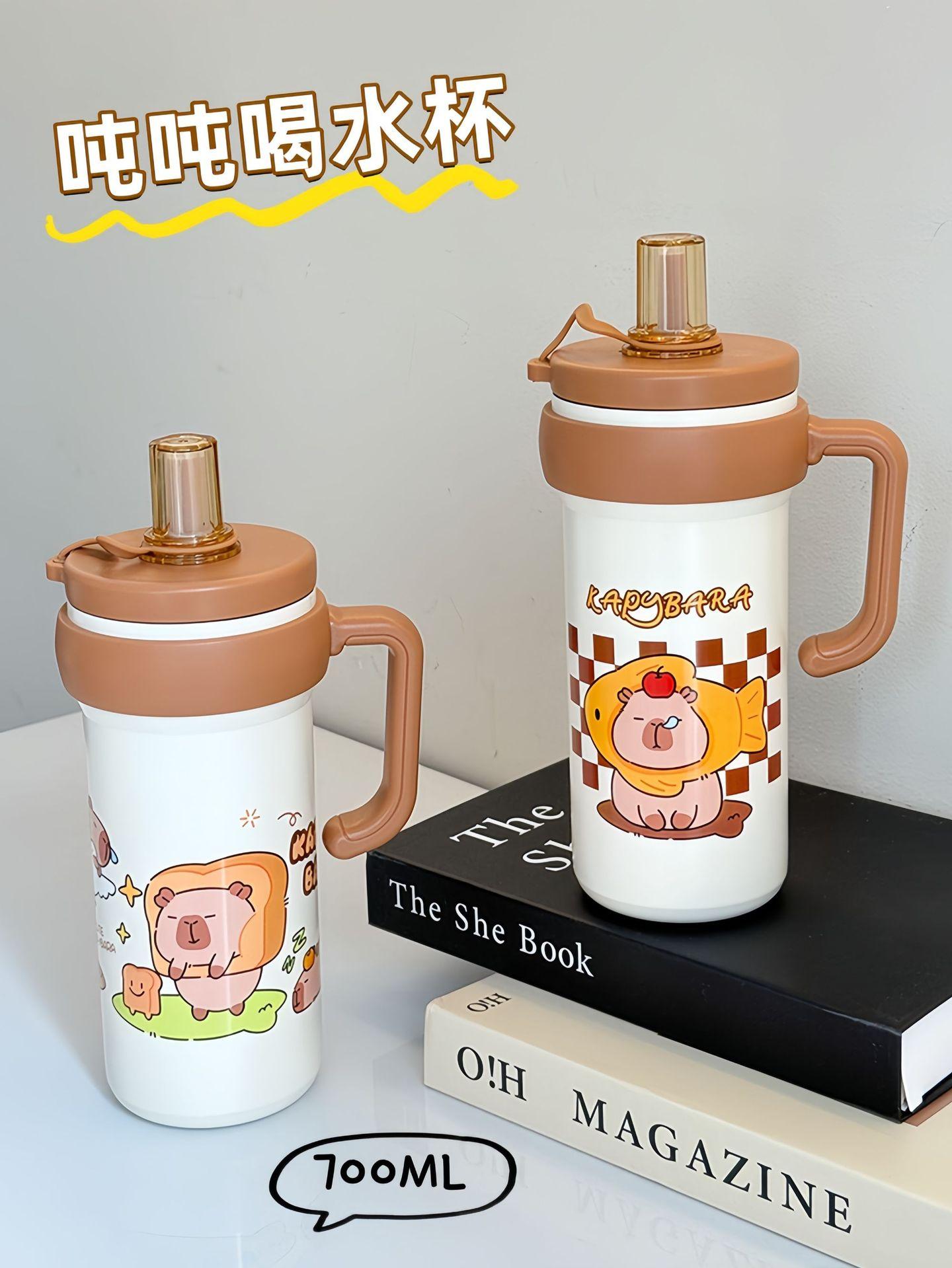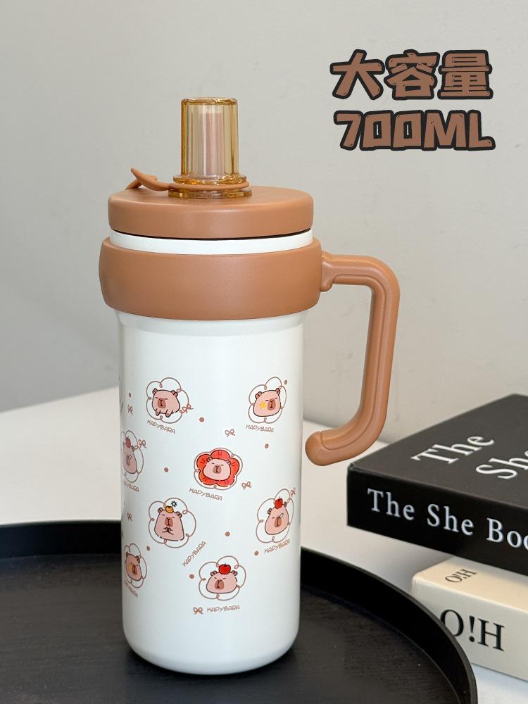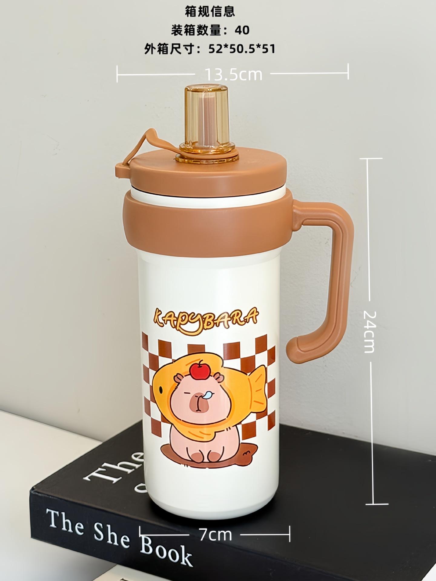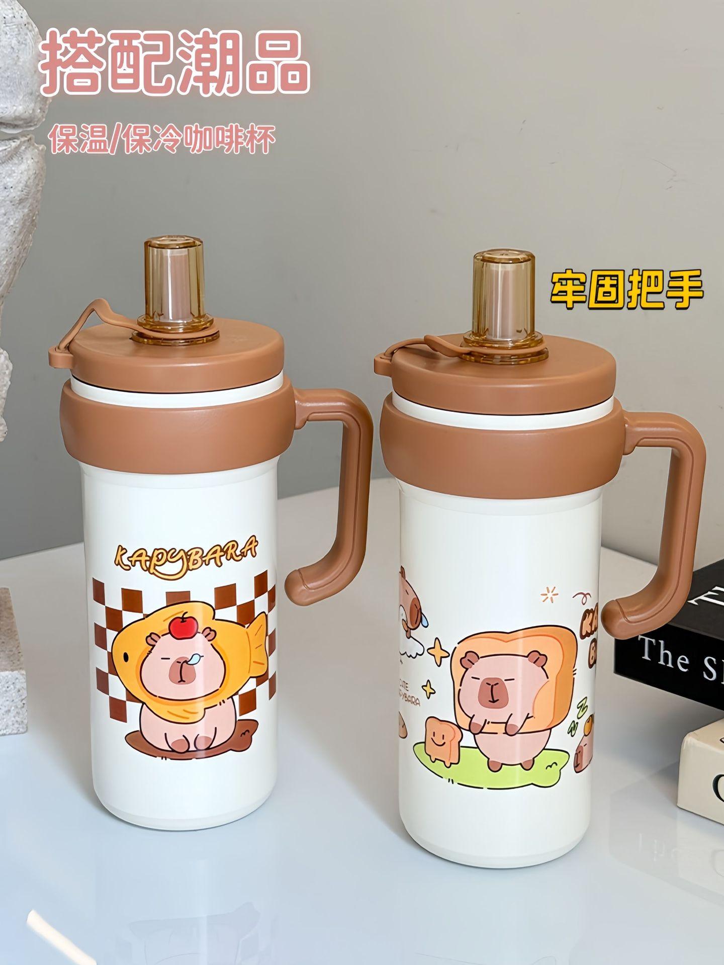 Nueva Taza de Café Portátil de Gran Capacidad de Alto Valor Dibujos Animados Acero Inoxidable 316 Aislada para Frío y Calor con Vaso con Pajita
