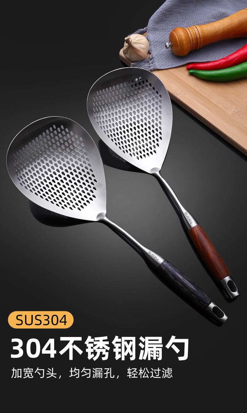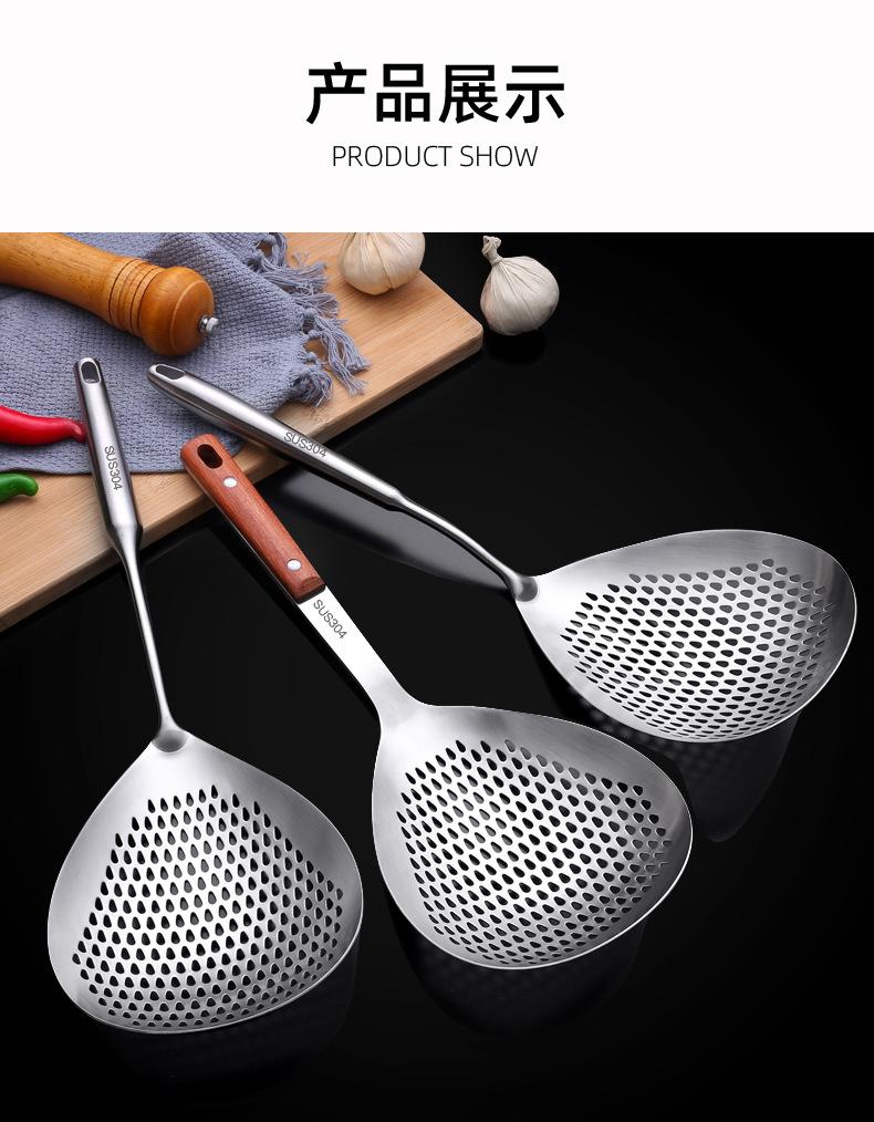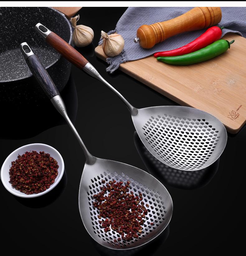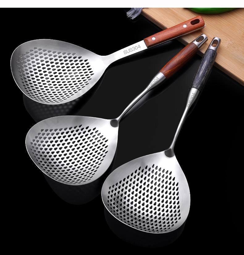 Colador de pimienta de acero inoxidable de madera maciza 304, artefacto para pescar fideos de cocina doméstica, cuchara para dumplings, colador para escurrir, colador para freír