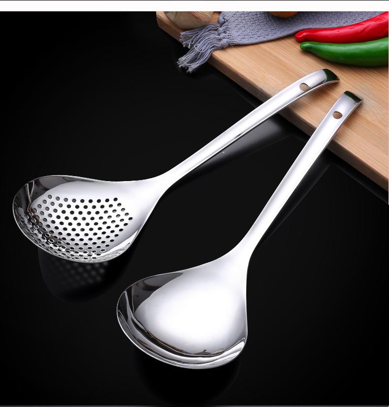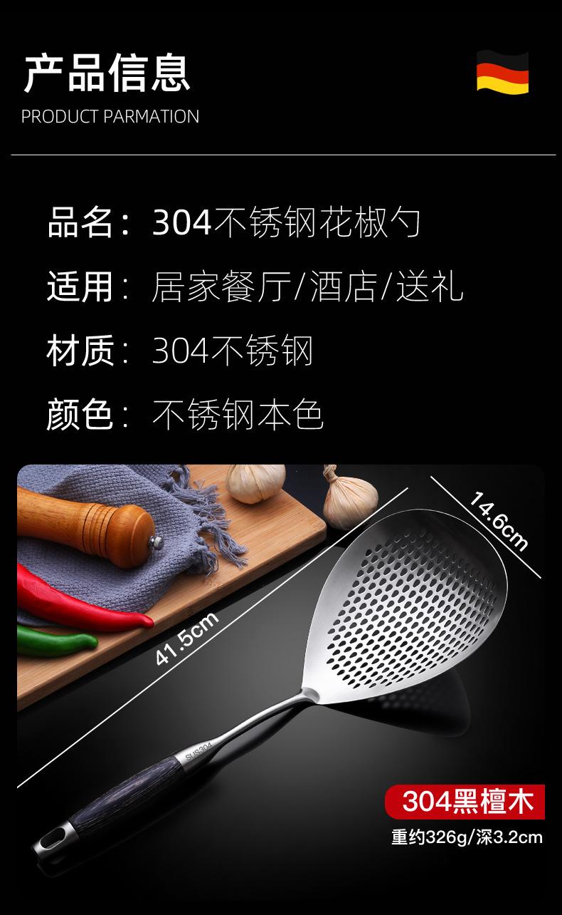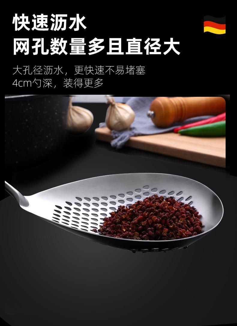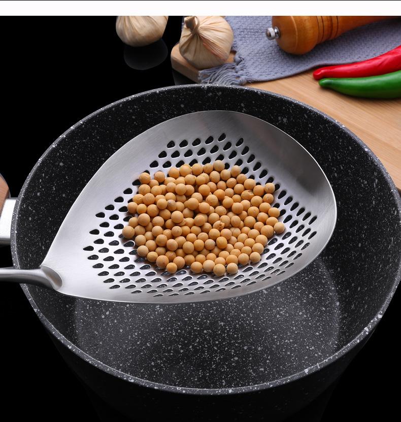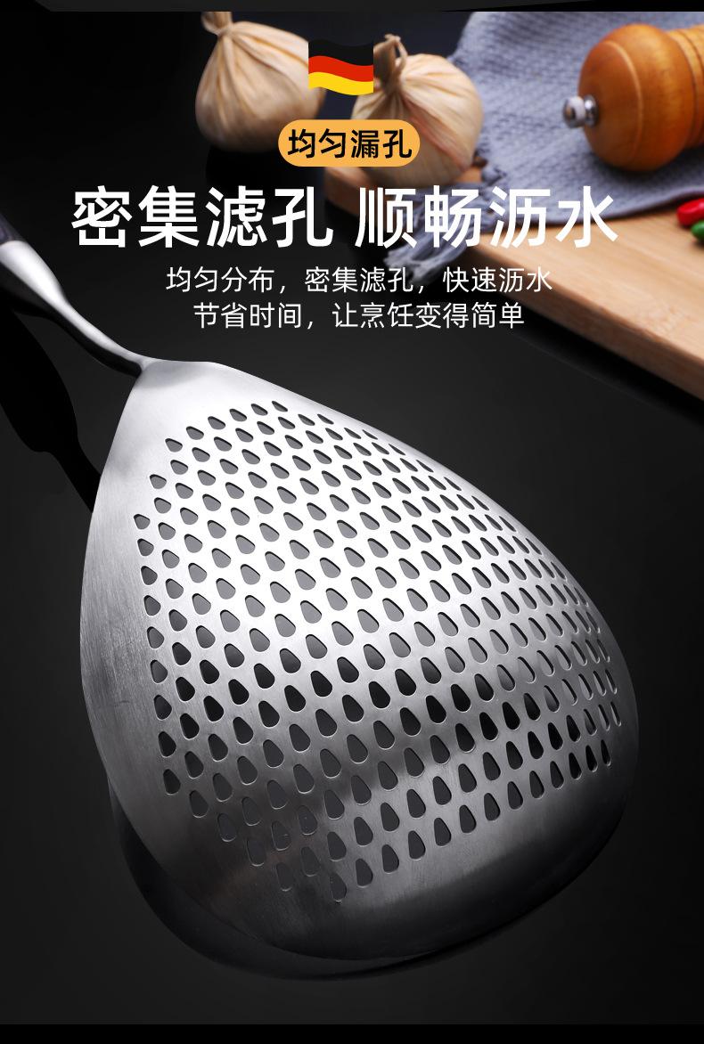 Colador de pimienta de acero inoxidable de madera maciza 304, artefacto para pescar fideos de cocina doméstica, cuchara para dumplings, colador para escurrir, colador para freír