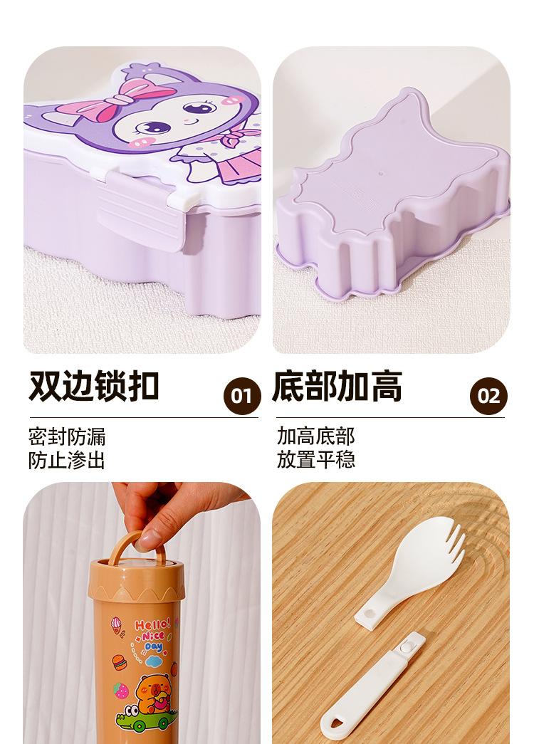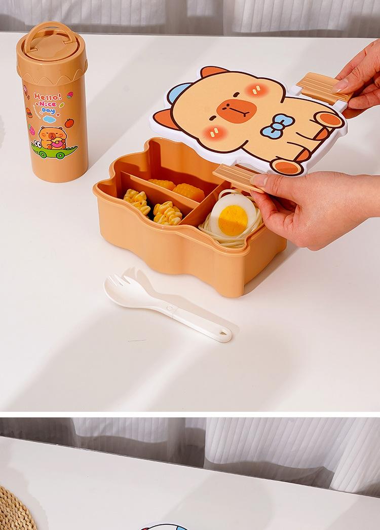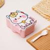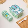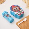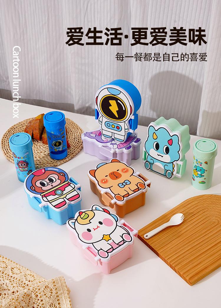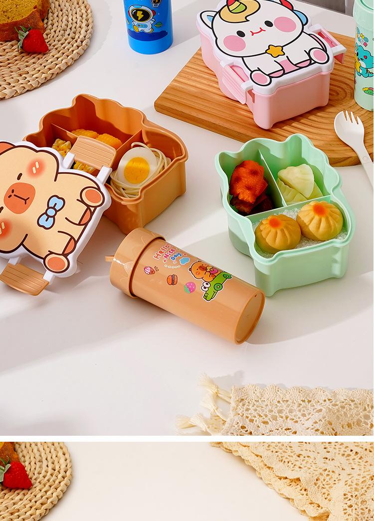 Lonchera de dibujos animados con partición, Lonchera con vaso de agua, juego de Lonchera de gran capacidad con cubiertos, Lonchera apta para microondas