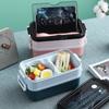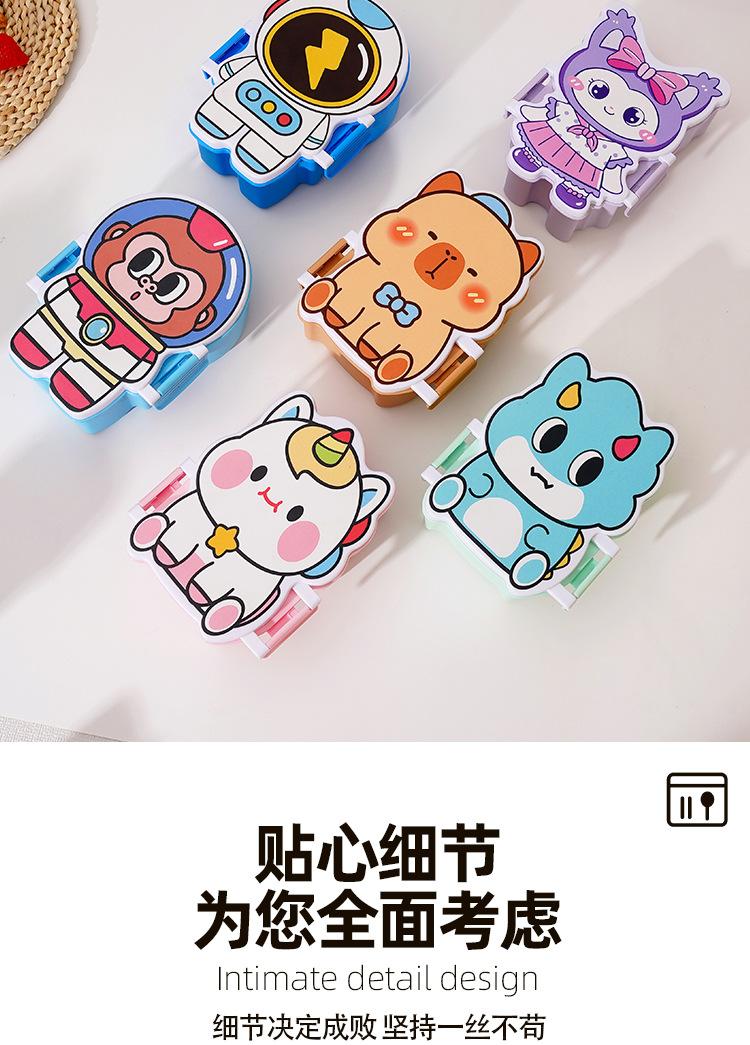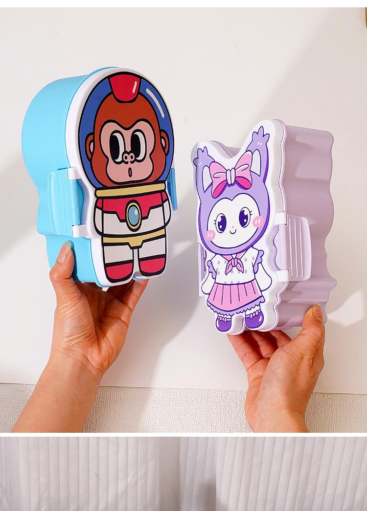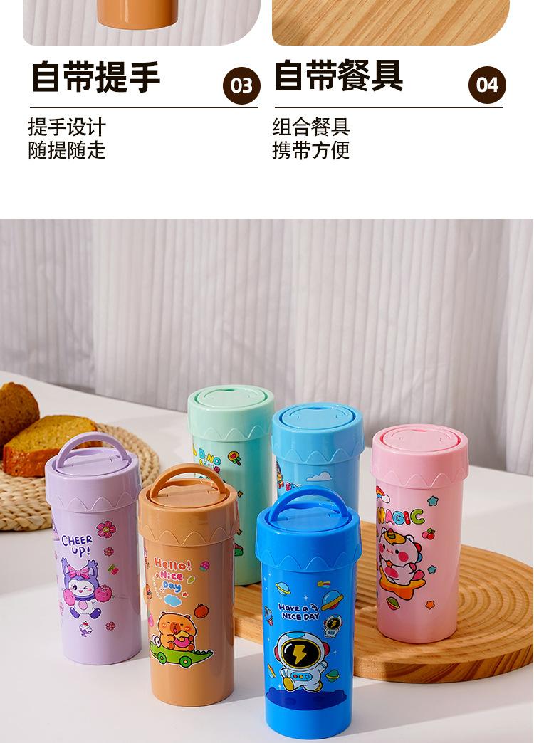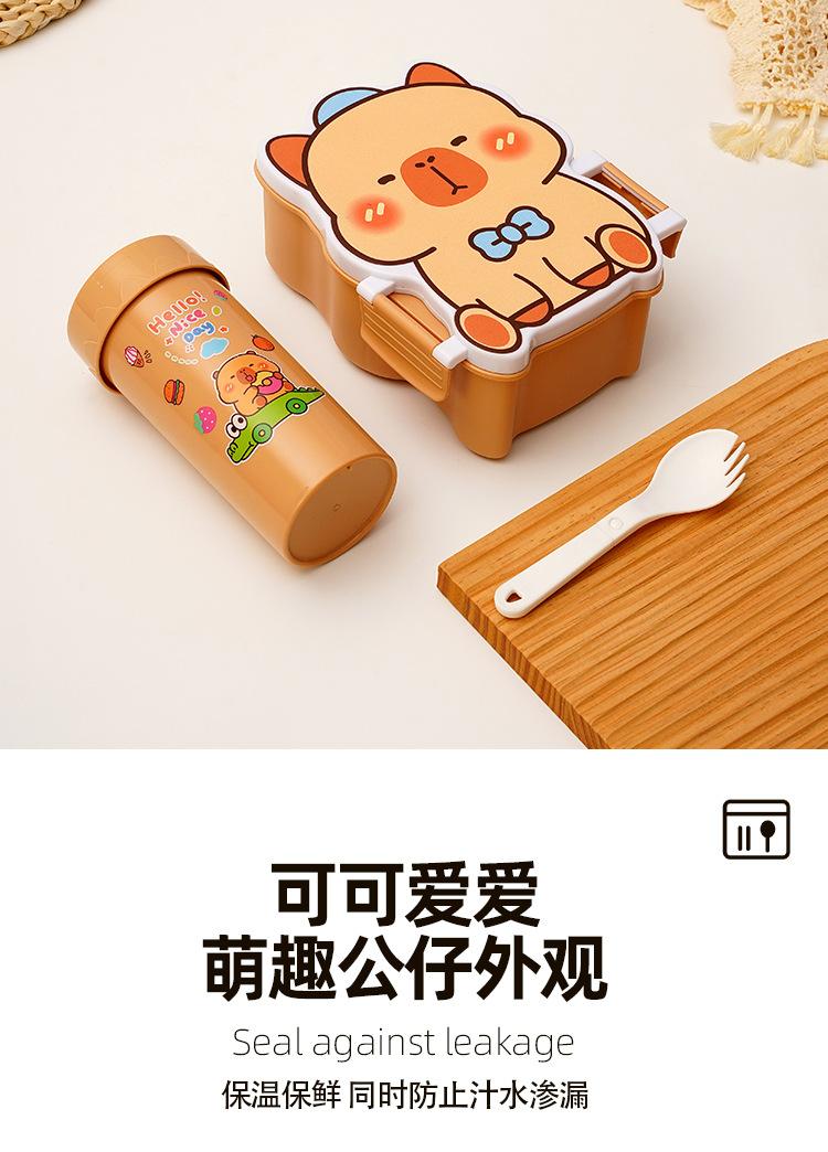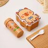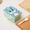 Lonchera de dibujos animados con partición, Lonchera con vaso de agua, juego de Lonchera de gran capacidad con cubiertos, Lonchera apta para microondas
