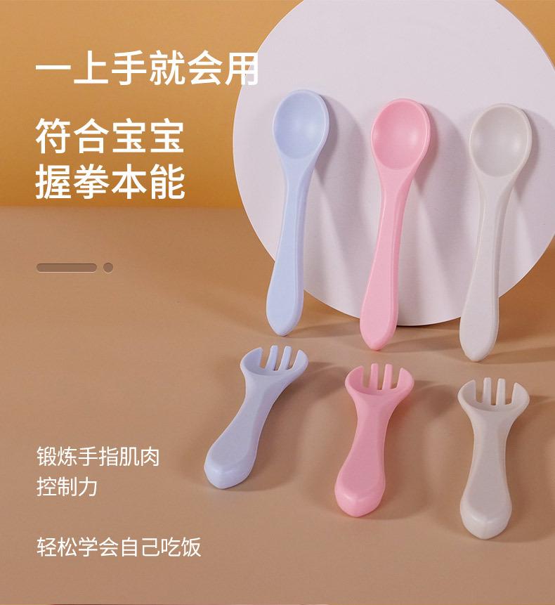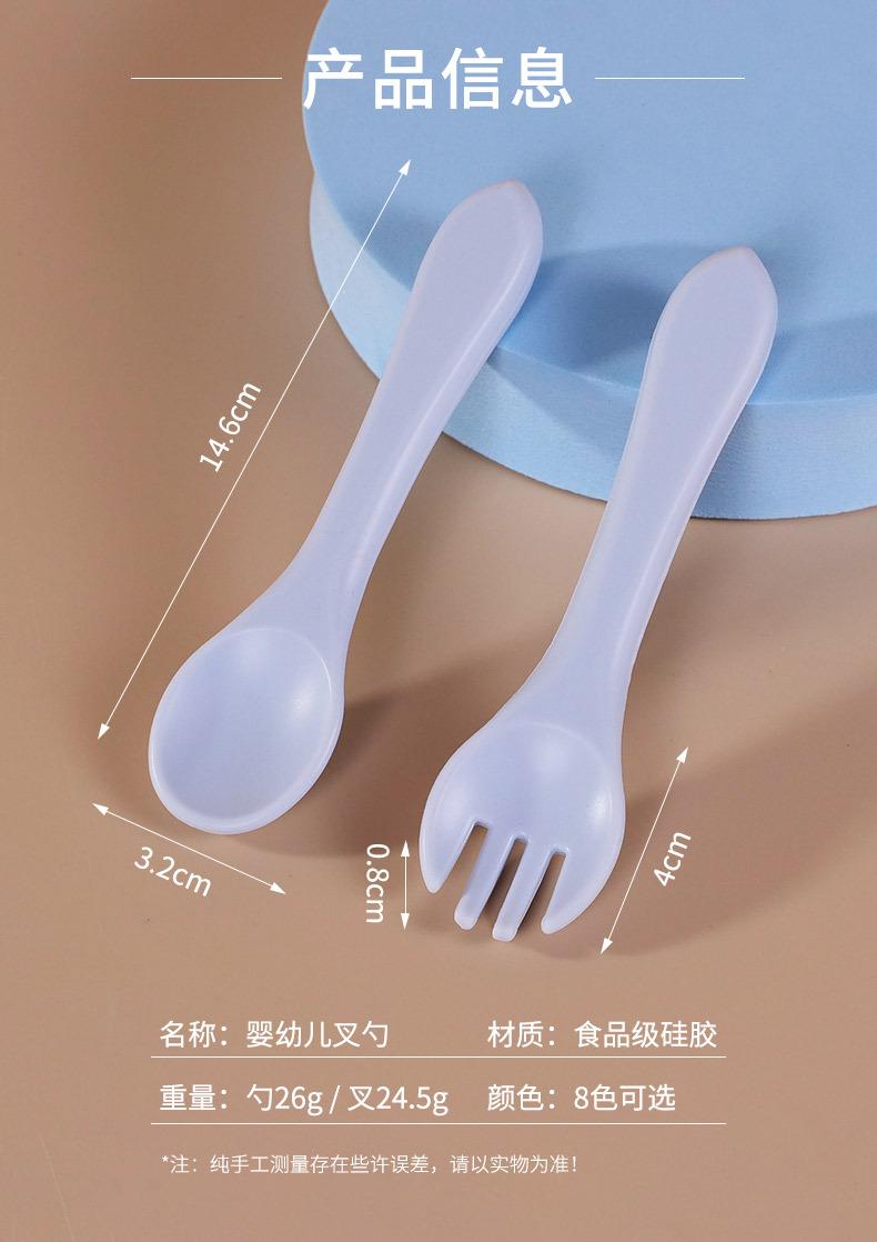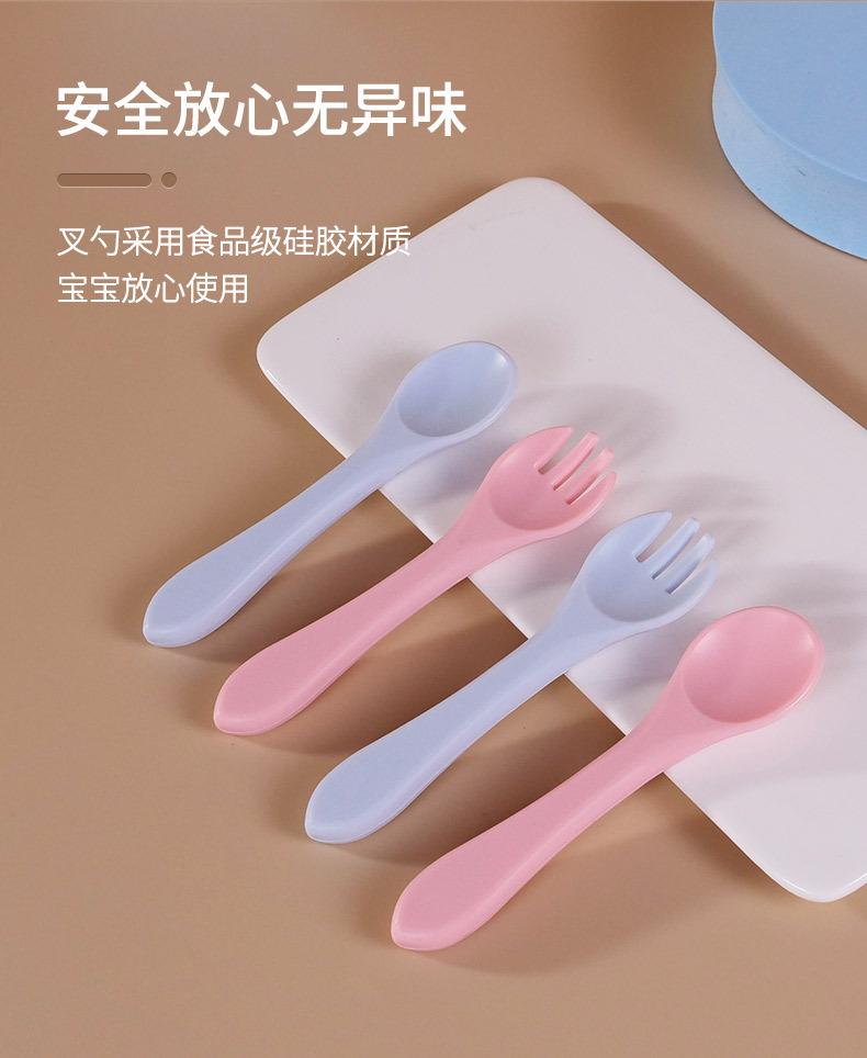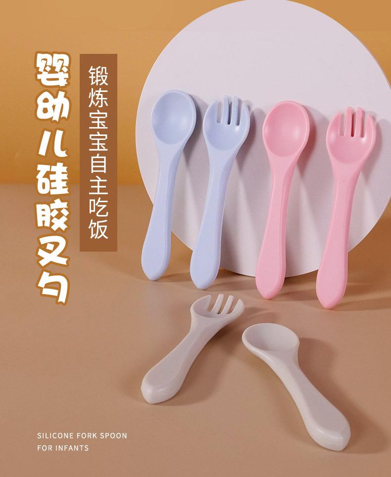 Tenedor y Cuchara de Silicona de Grado Alimenticio Cuchara Pequeña Curvada Tenedor y Cuchara de Goma Suave Tenedor y Cuchara para Aprendizaje de Bebés Cuchara para Alimentar Cuchillo y Tenedor para Niños Pequeños