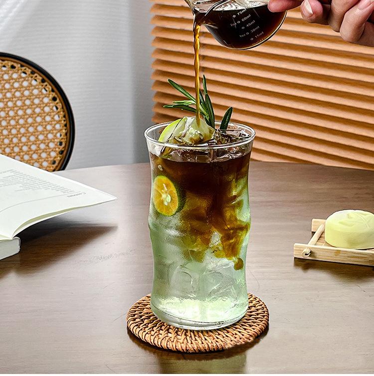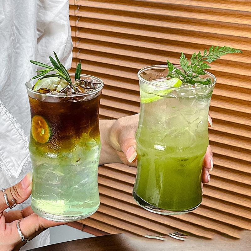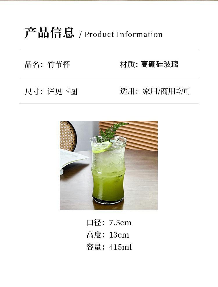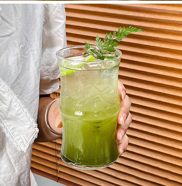 Vaso de Bambú de Vidrio Borosilicato Alto Vaso para Café Latte Americano con Hielo Restaurante de Celebridad de Internet Vaso para Agua Resistente a Altas Temperaturas Vaso para Bebidas