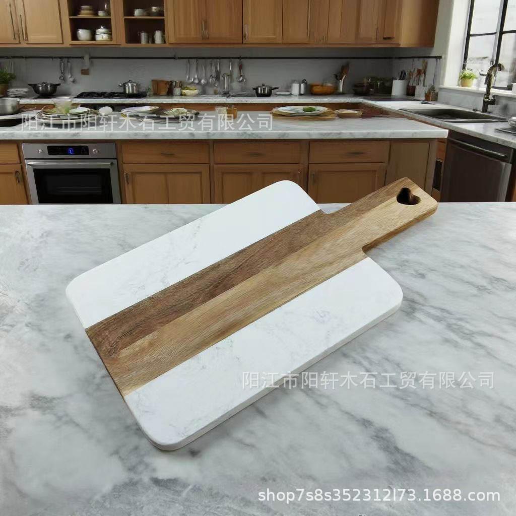 Compra Tabla de cortar de mármol transfronteriza para el hogar con asa, tabla de cortar cuadrada, empalme de madera, tabla de cortar de madera de acacia, plato para bistec de comida occidental al por mayor en Joom.pro