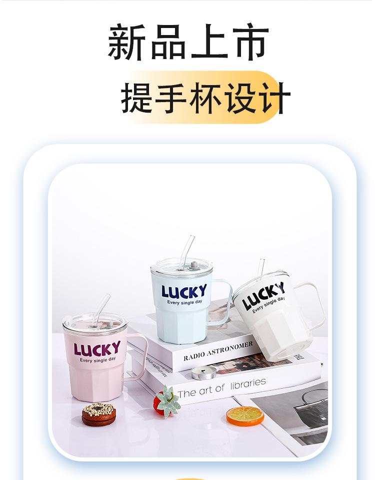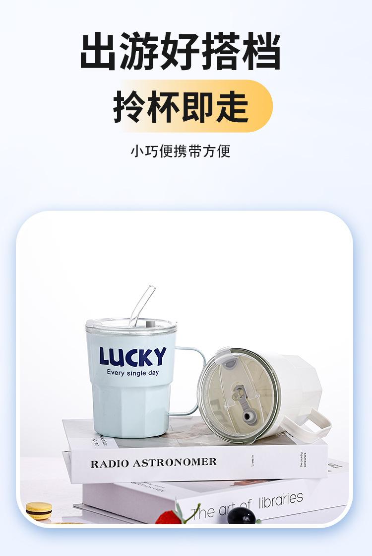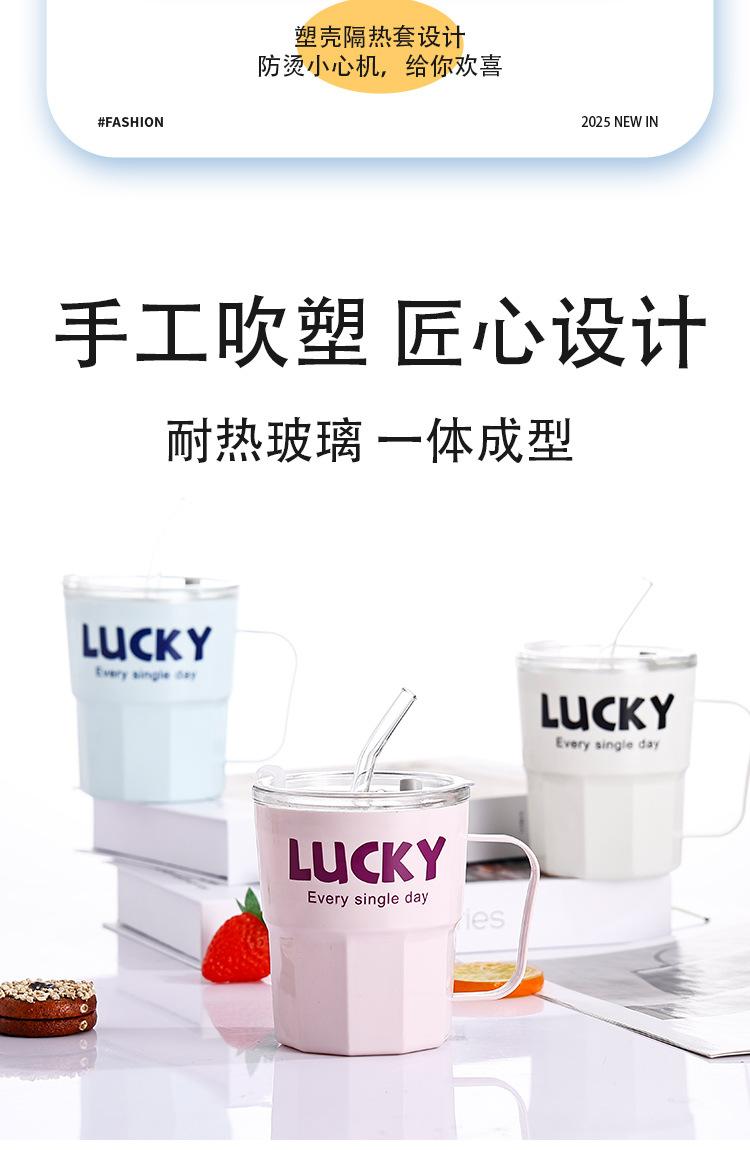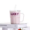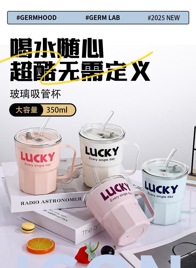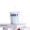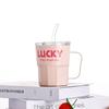 Taza de Vidrio con Asa de Estilo Ins de Aspecto Elevado para Mujeres Verano Taza de Agua Simple con Pajita Vaso de Agua de Vidrio Portátil de Gran Capacidad