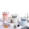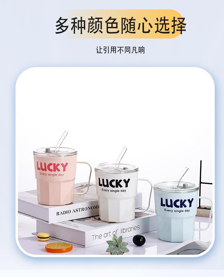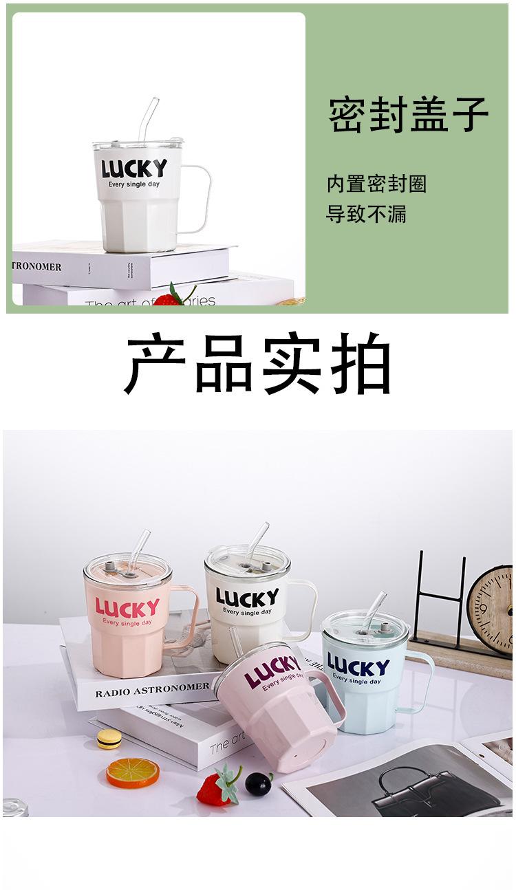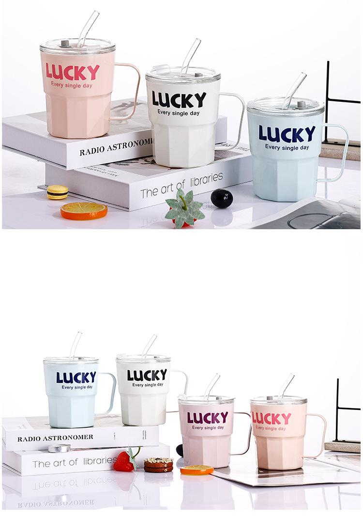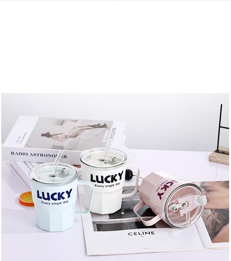 Taza de Vidrio con Asa de Estilo Ins de Aspecto Elevado para Mujeres Verano Taza de Agua Simple con Pajita Vaso de Agua de Vidrio Portátil de Gran Capacidad
