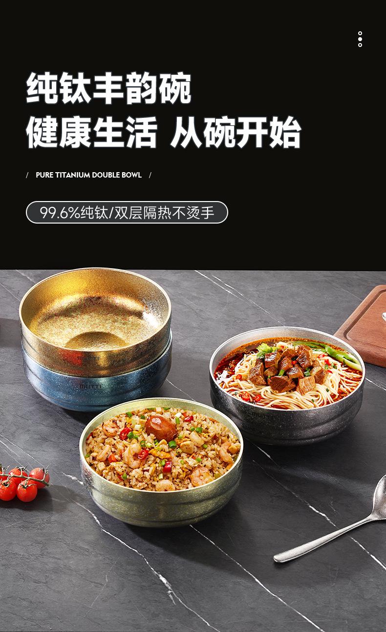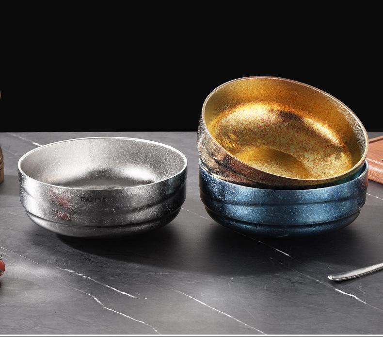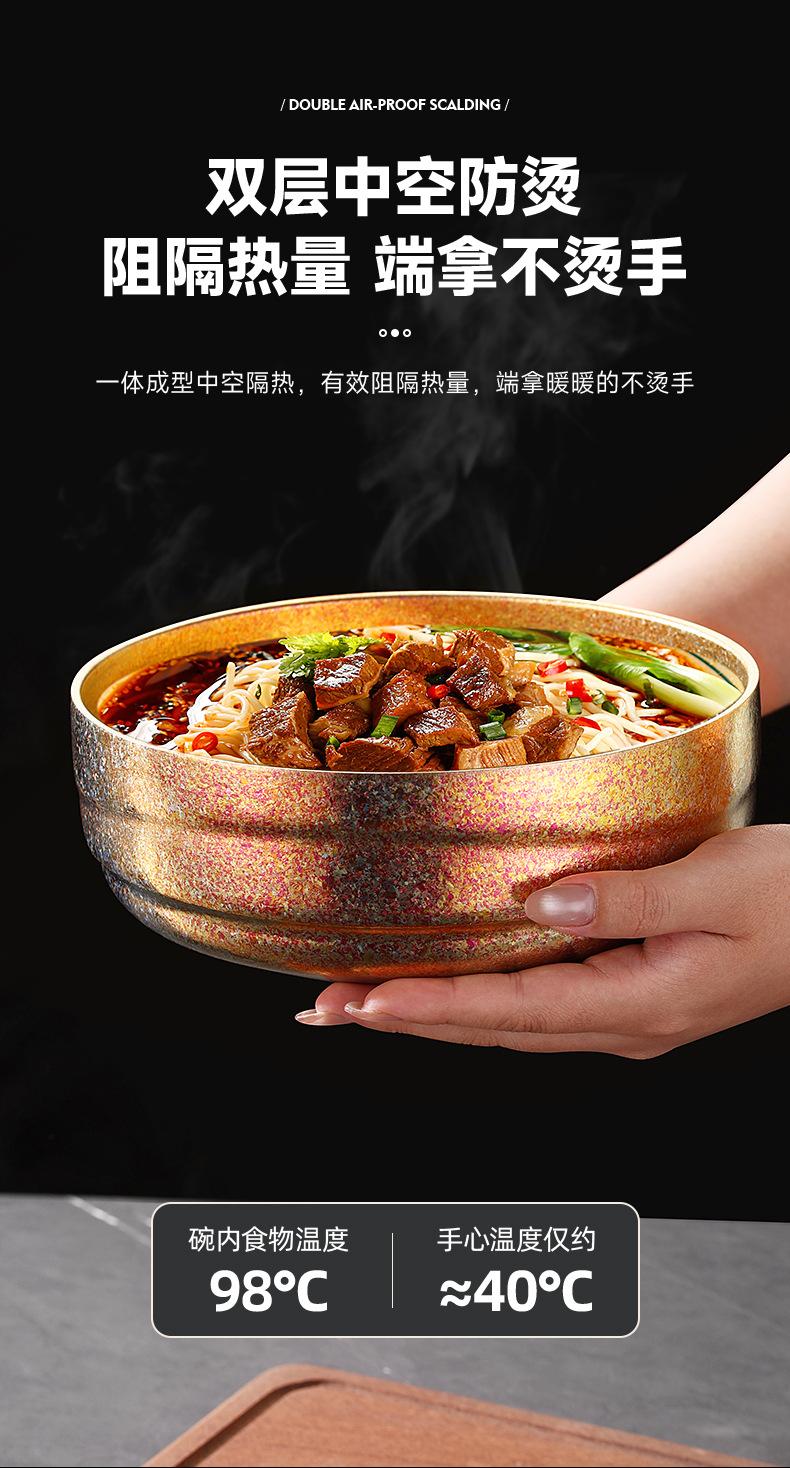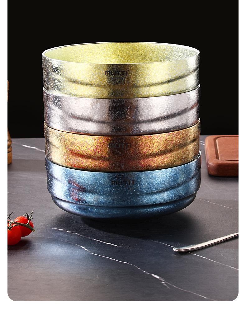 Tazón Grande de Doble Capa de Titanio Puro para el Hogar, Tazón para Comer Estilo Chino, Tazón Grande para Sopa Multicolor Brillante, Tazón para Compartir Comida, Tazón para Arroz, Comida de Lujo Ligero de Alta Gama