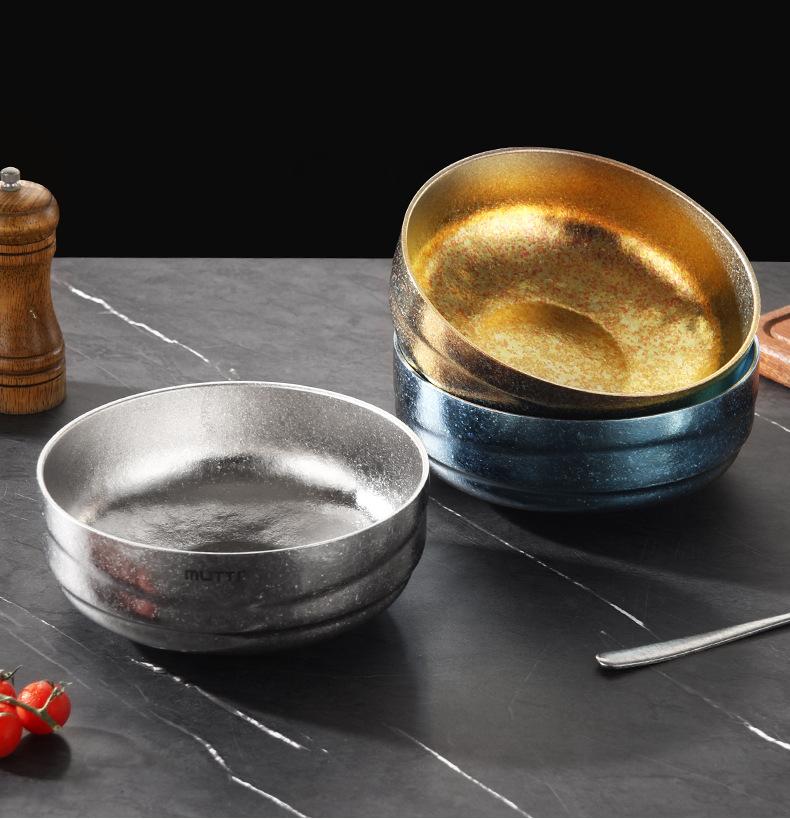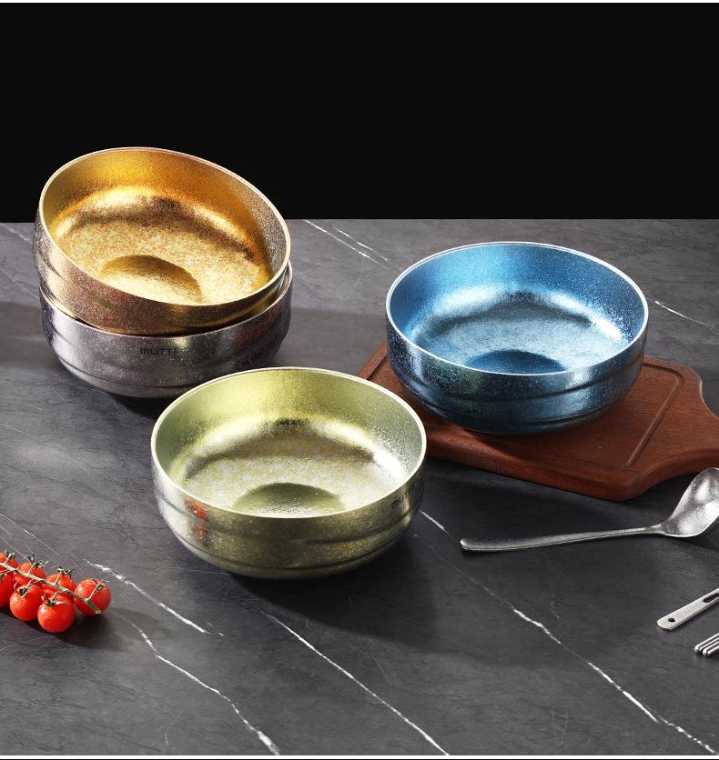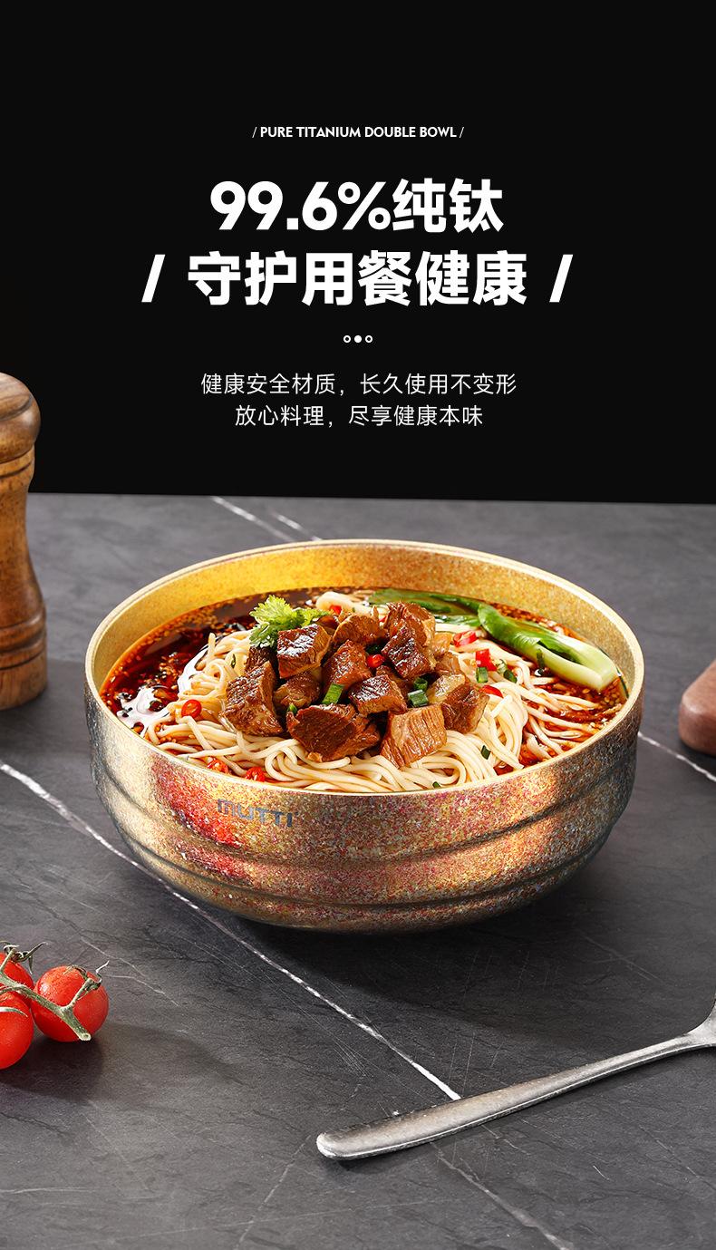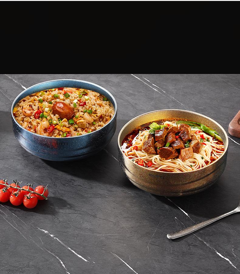 Tazón Grande de Doble Capa de Titanio Puro para el Hogar, Tazón para Comer Estilo Chino, Tazón Grande para Sopa Multicolor Brillante, Tazón para Compartir Comida, Tazón para Arroz, Comida de Lujo Ligero de Alta Gama