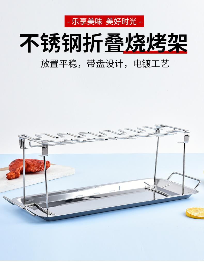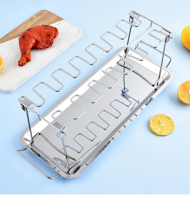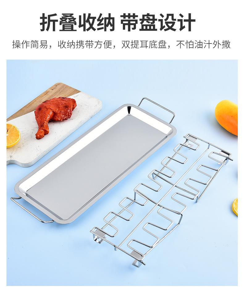 Parrilla plegable de acero inoxidable para barbacoa transfronteriza en stock para exteriores, asador para pierna de pollo, rejilla para barbacoa con bandeja inferior, rejilla para asar pollo