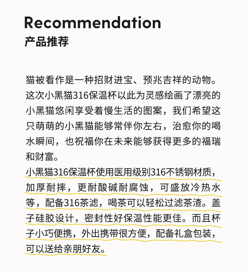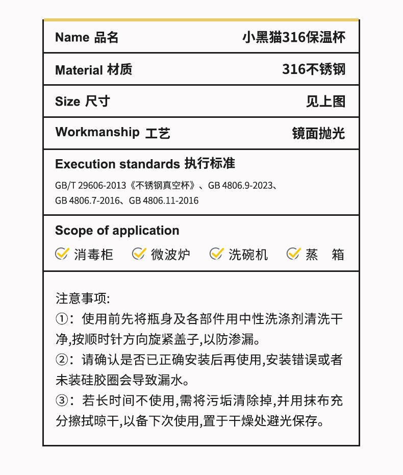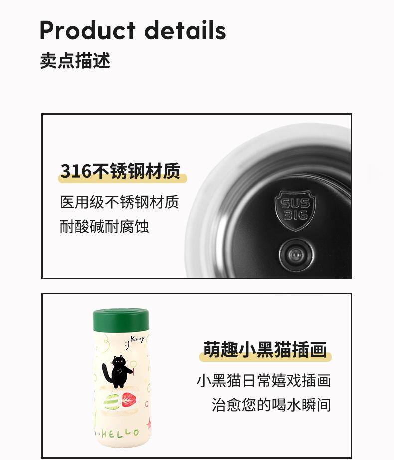 [spring/320ml] little black cat 316 stainless steel thermos cup