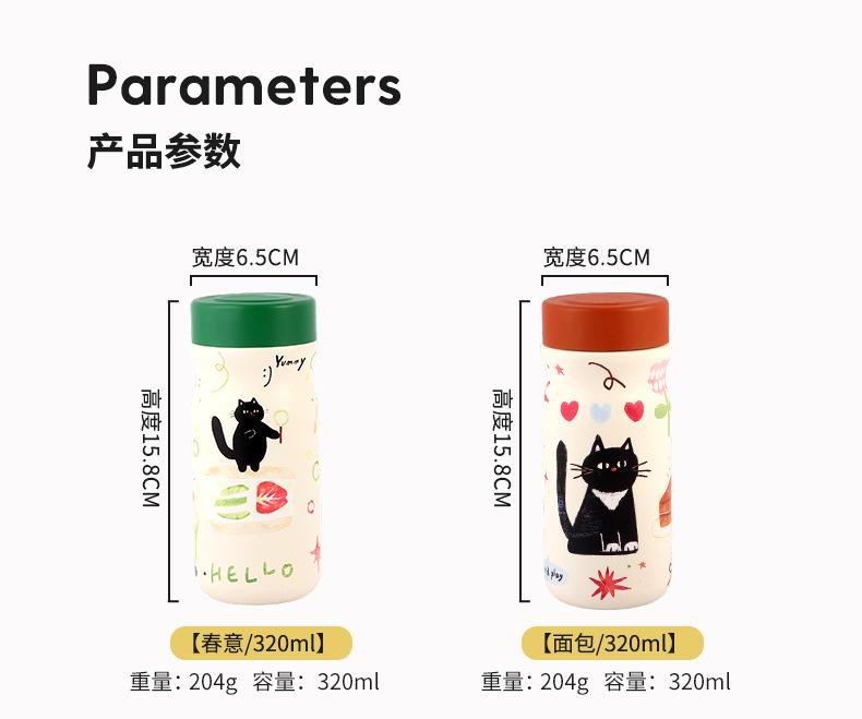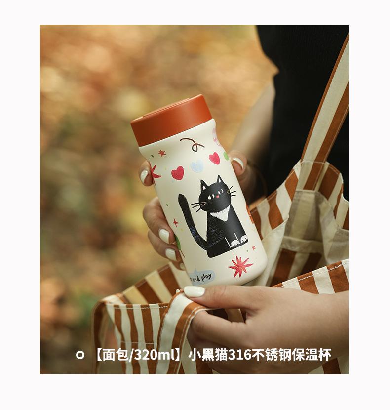 [spring/320ml] little black cat 316 stainless steel thermos cup, [bread/320ml] little black cat 316 stainless ...
