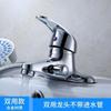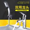 Grifo de Lavabo Todo Cobre, Grifo de Dos Manijas Montado Lateral para Lavabo de Baño con Cabezal de Ducha para Champú, Grifo para Agua Fría y Caliente