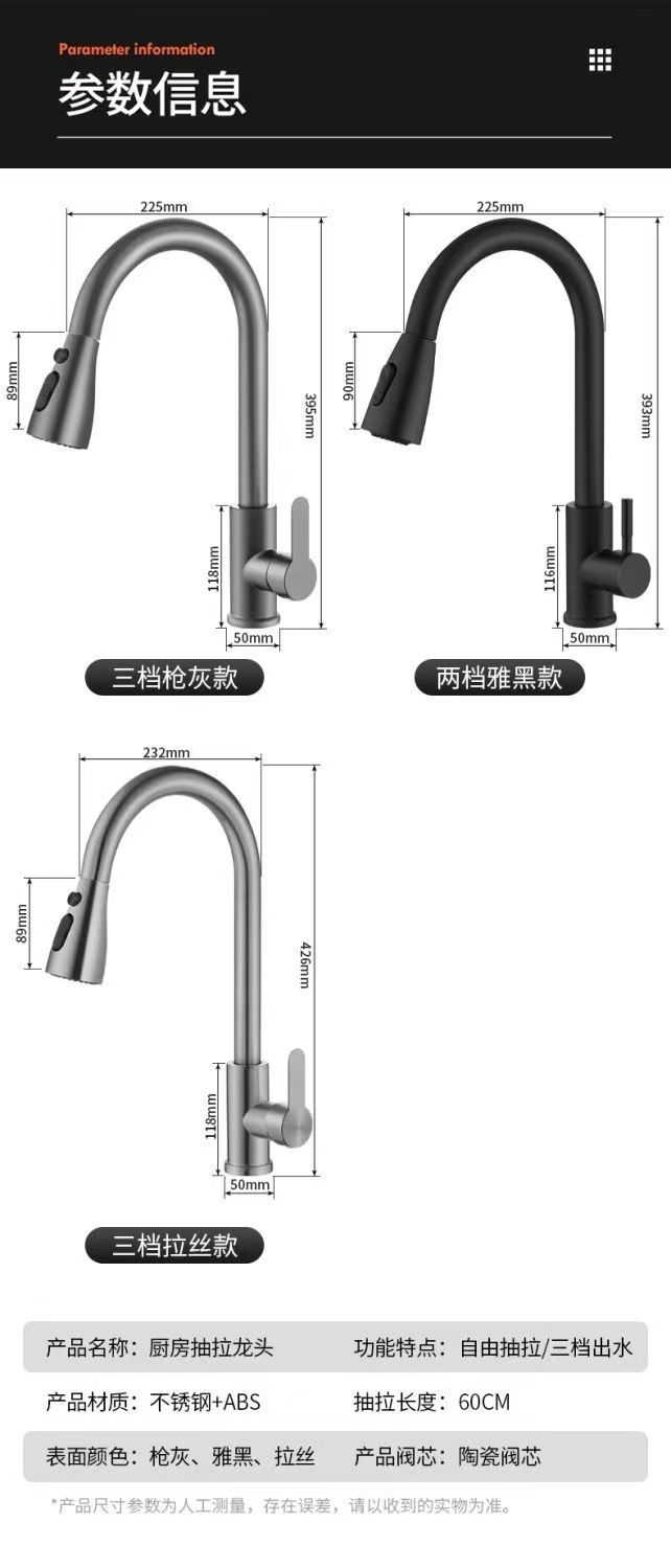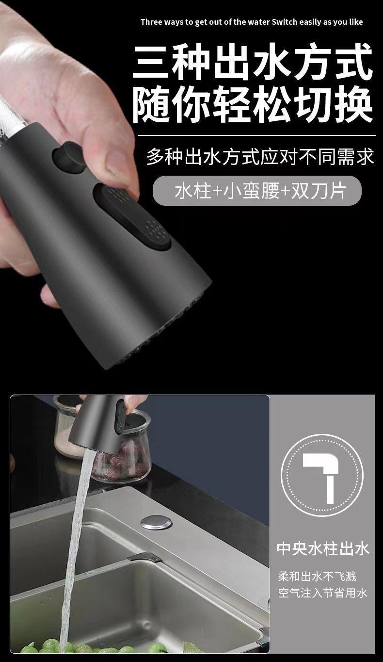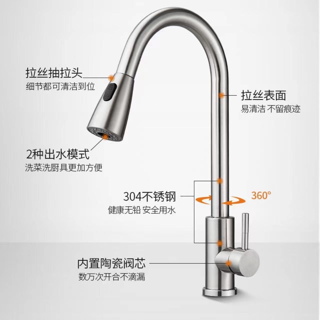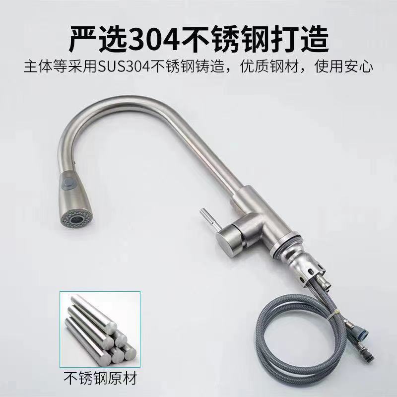Fregadero de Acero Inoxidable 304 Grifo Extraíble de Agua Fría y Caliente Retráctil Boquilla Extensible de Dos Velocidades Grifo de Fregadero