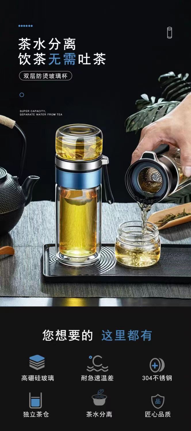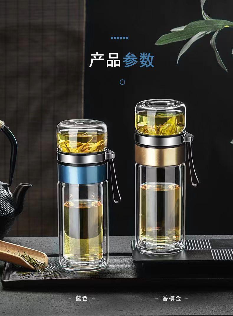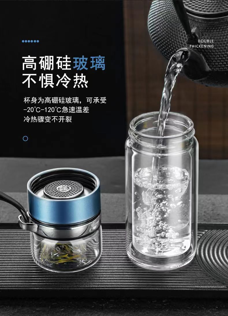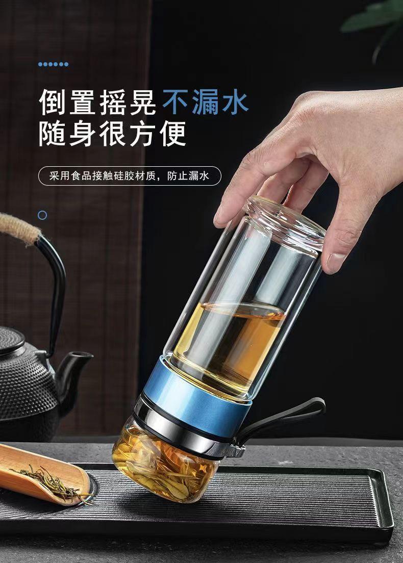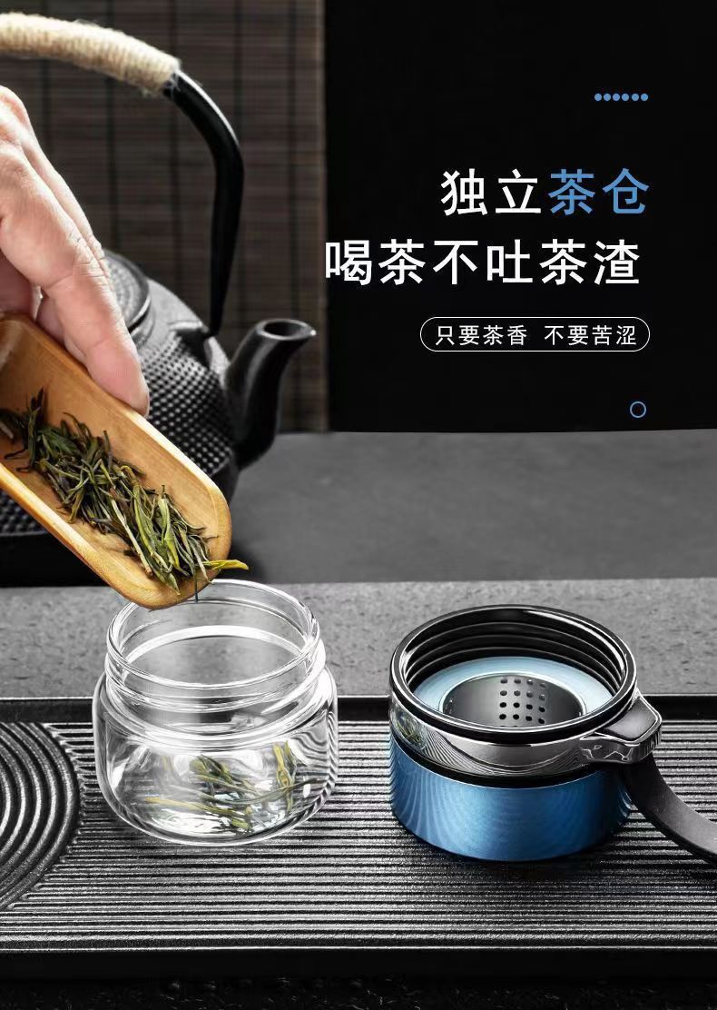 High borosilicate blue tea water separator cup, High borosilicate metal gray tea water separator cup, High bor...