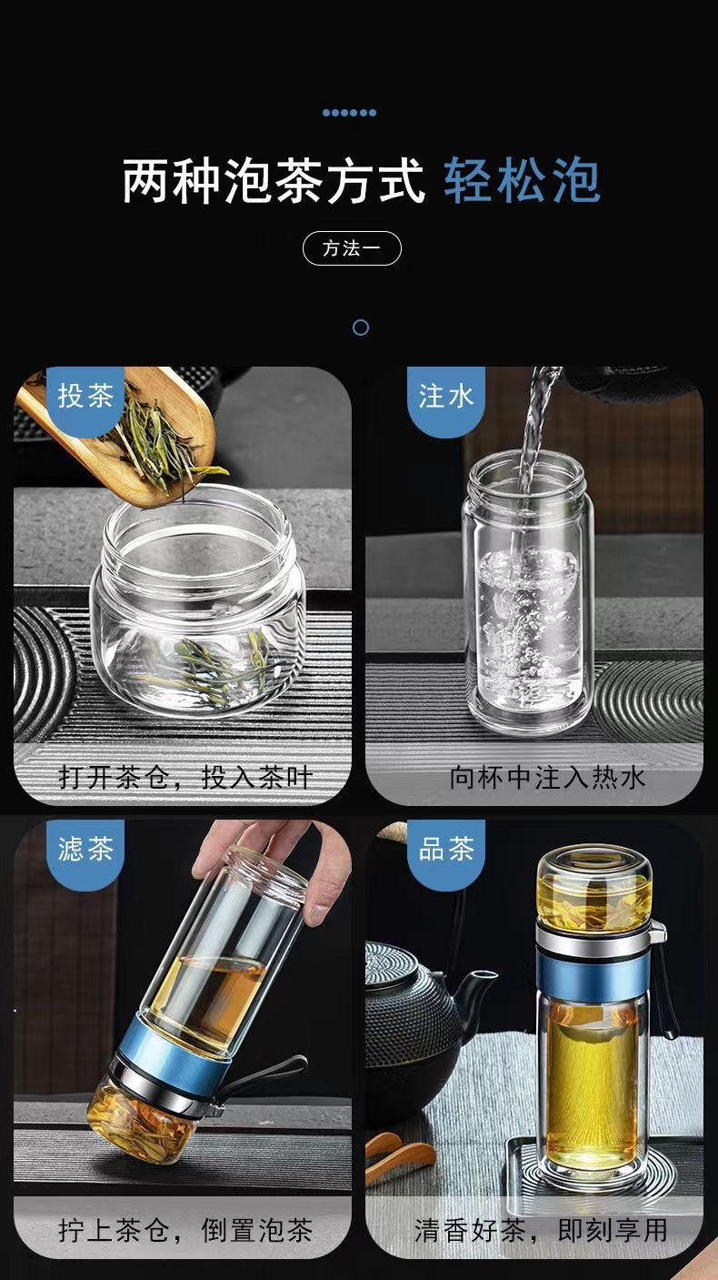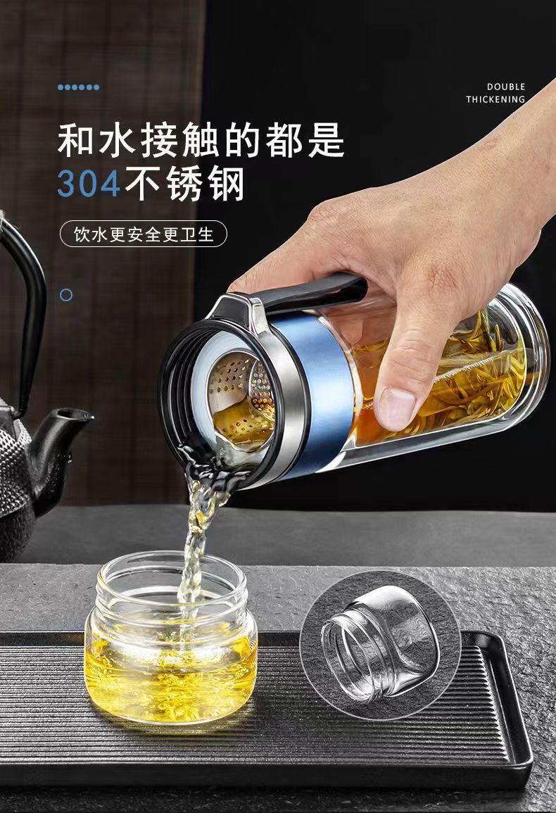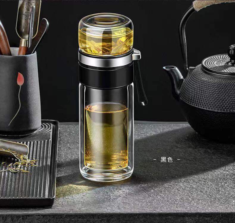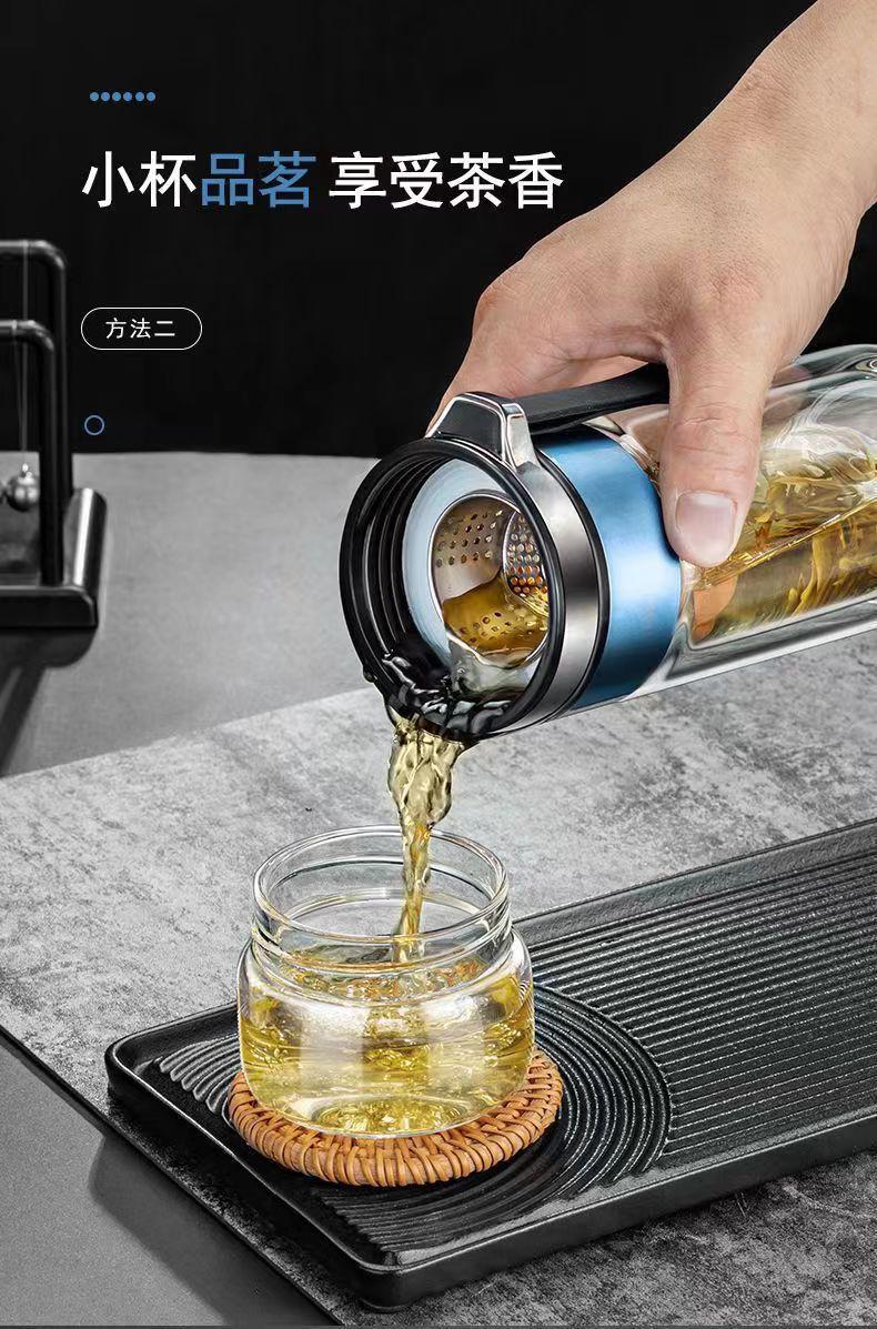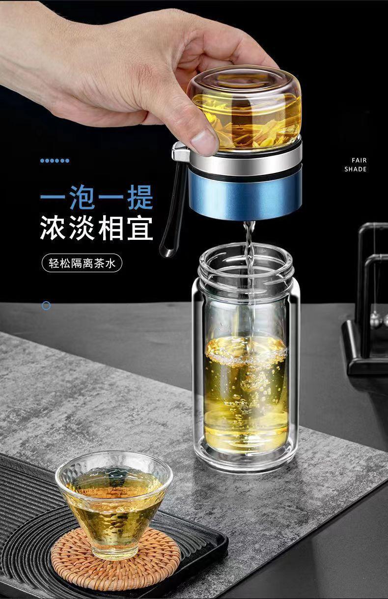 Taza para Separar el Té, Taza de Té, Vaso de Cristal para Agua para Hogar Negocios Coche, Taza de Regalo de Bienestar Nicho de Alta Gama Antiescaldante