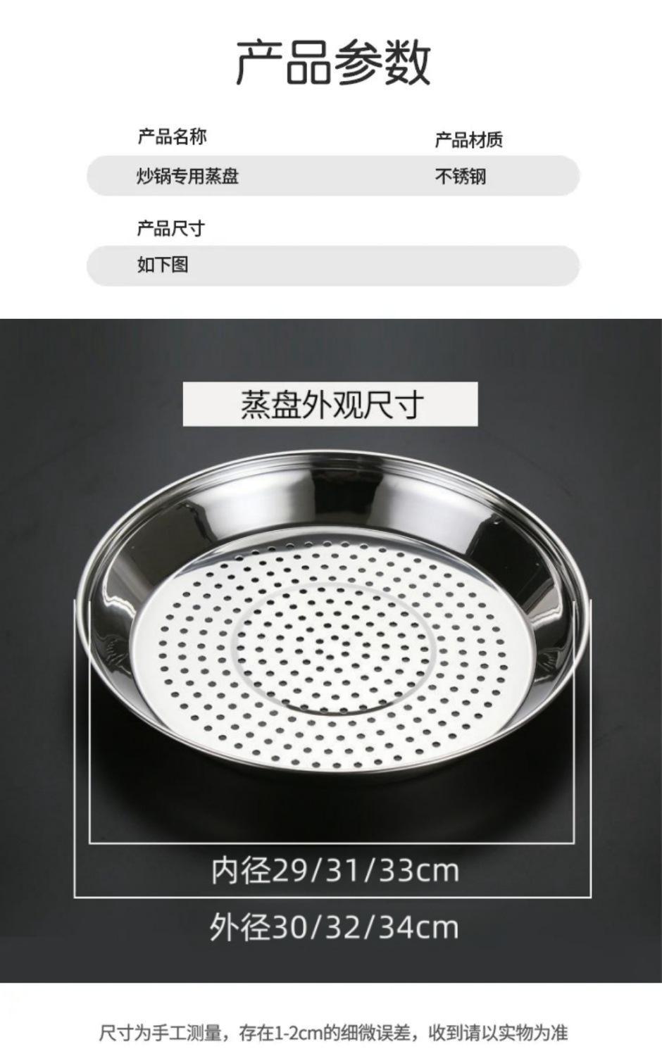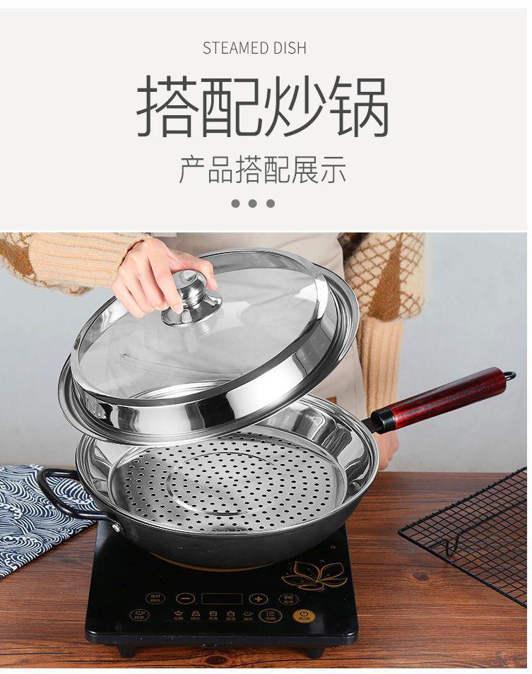 【Large Size 34cm】Wok Steaming Plate Thickened Material Dense Steam Holes