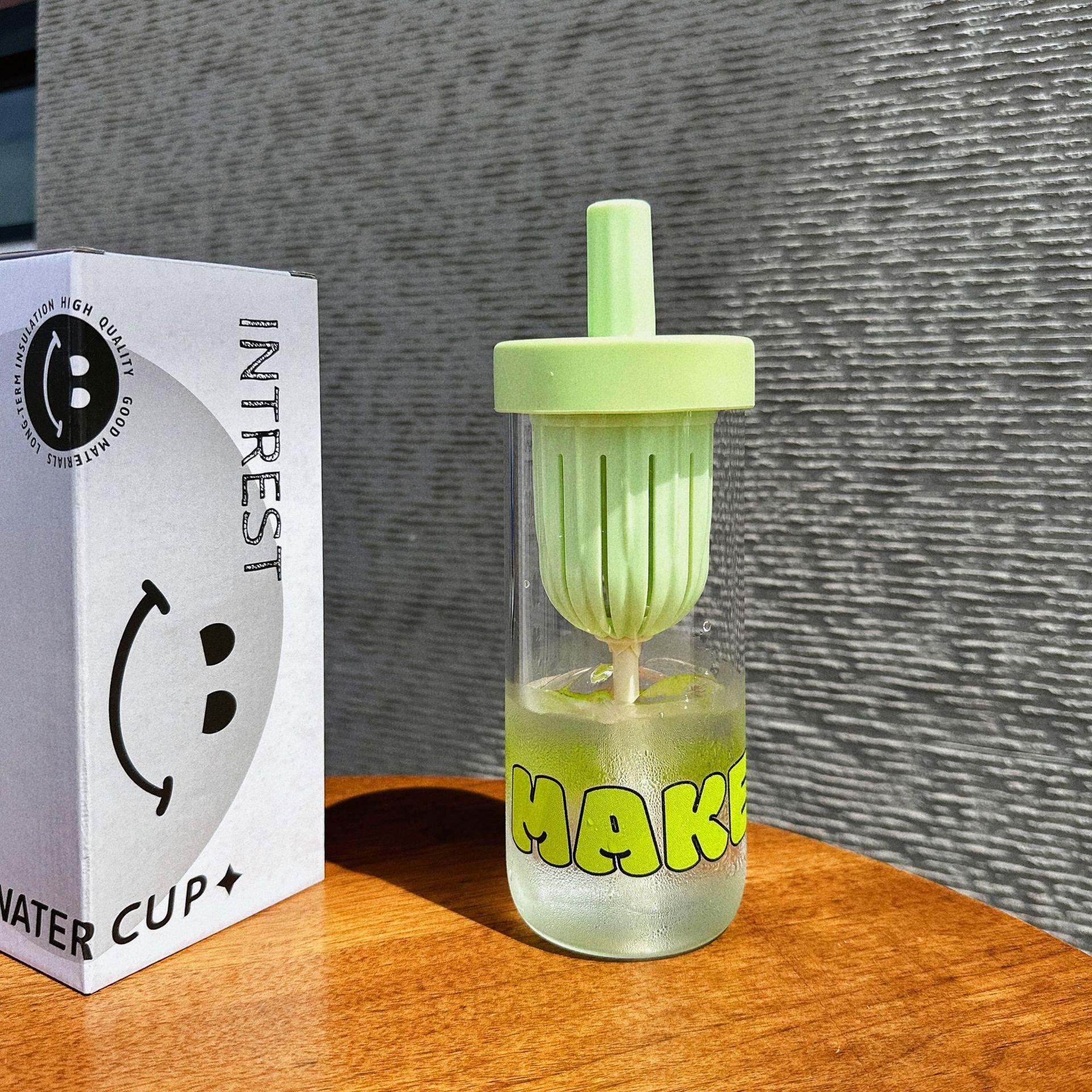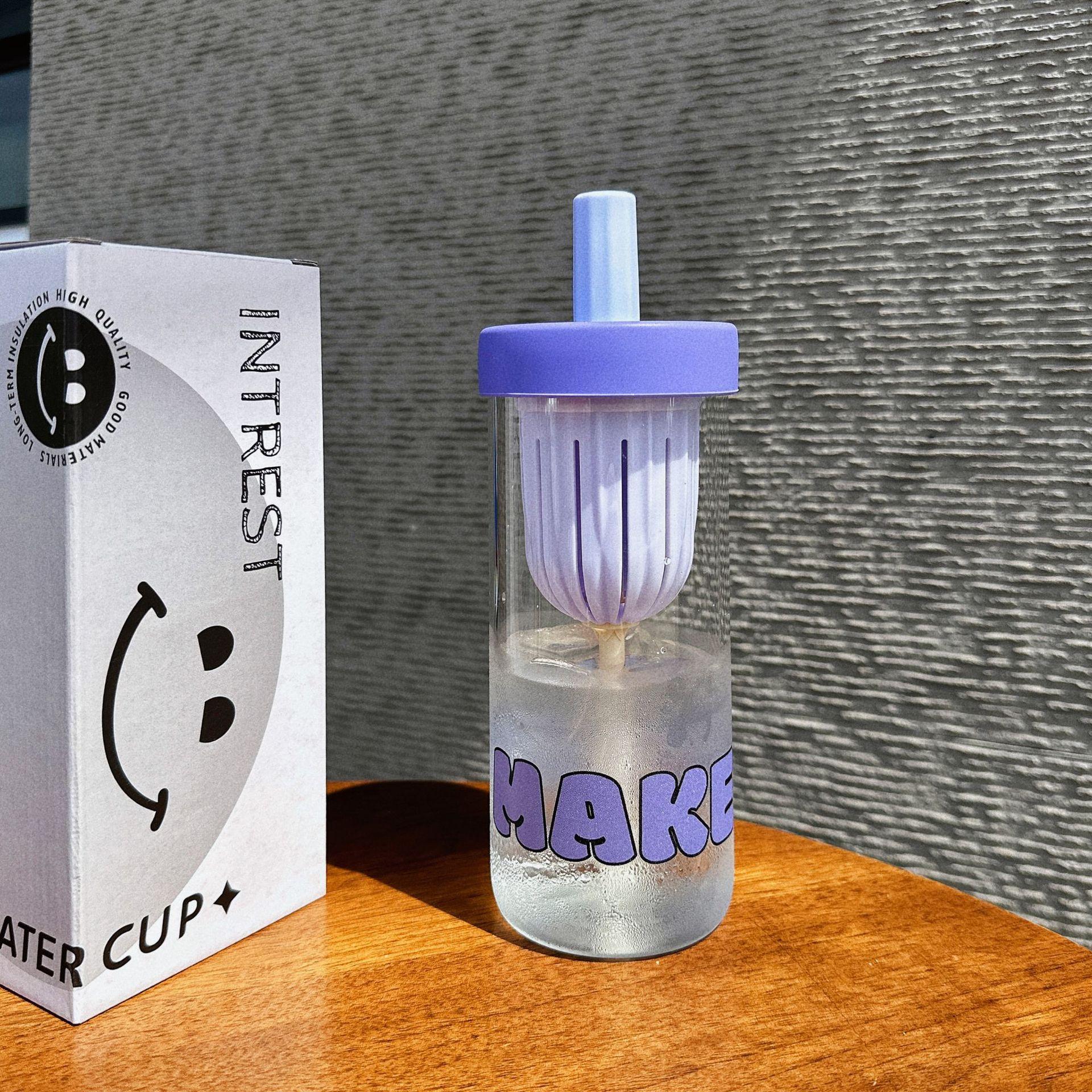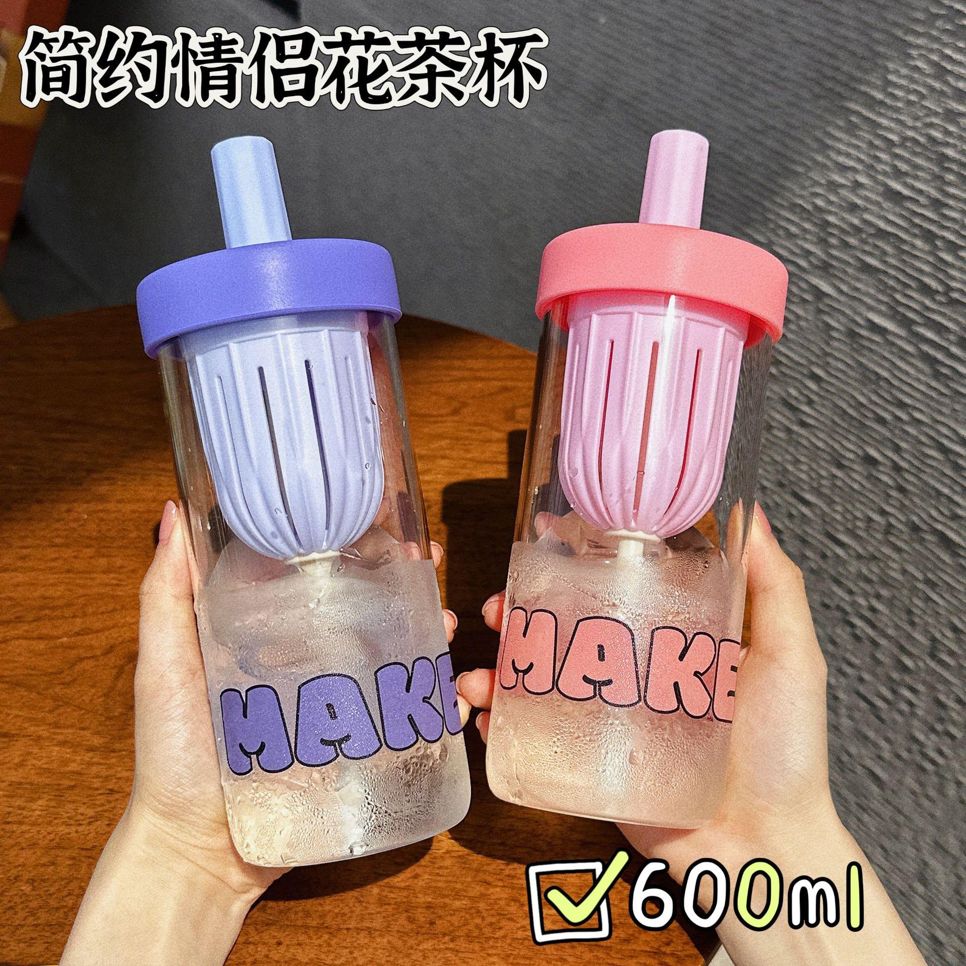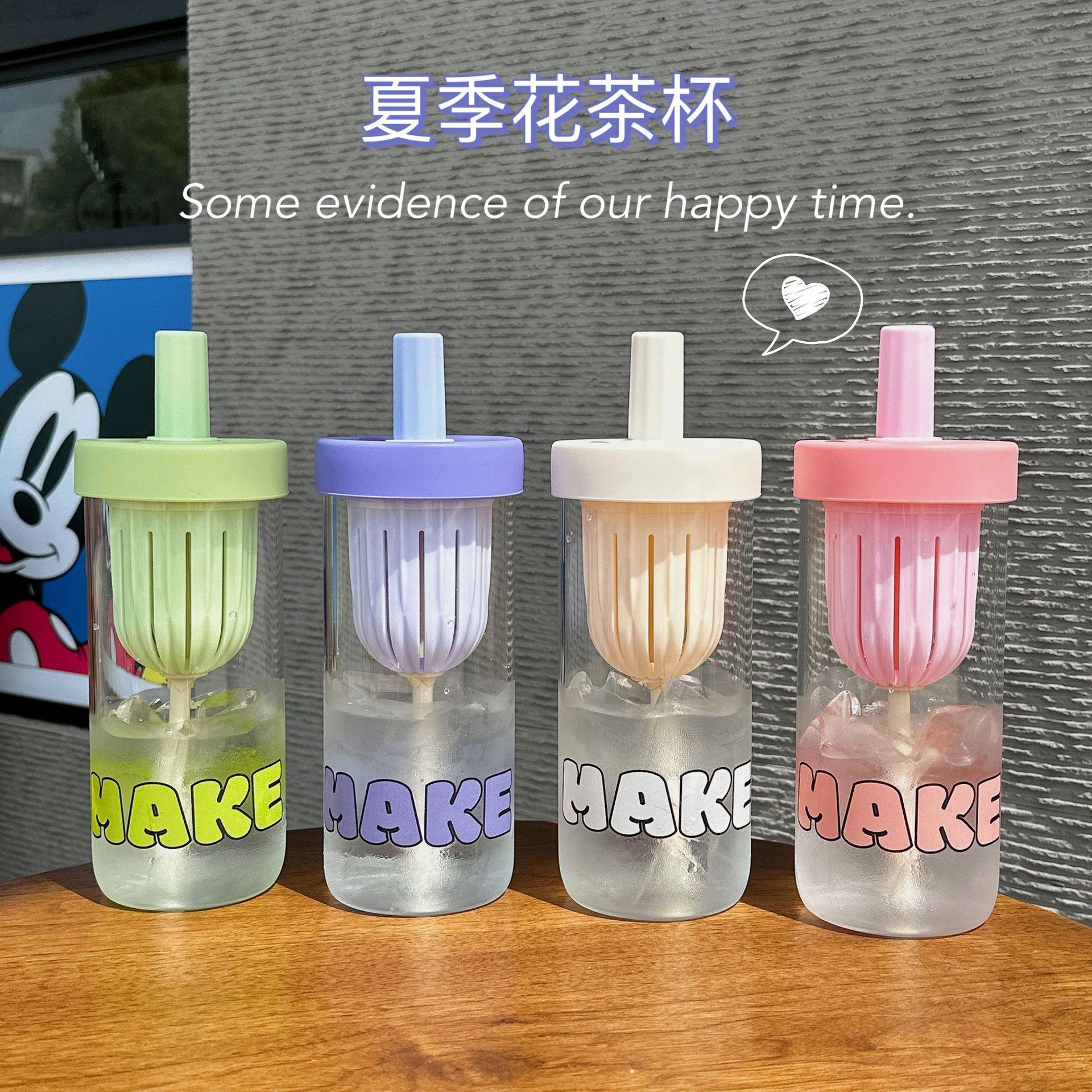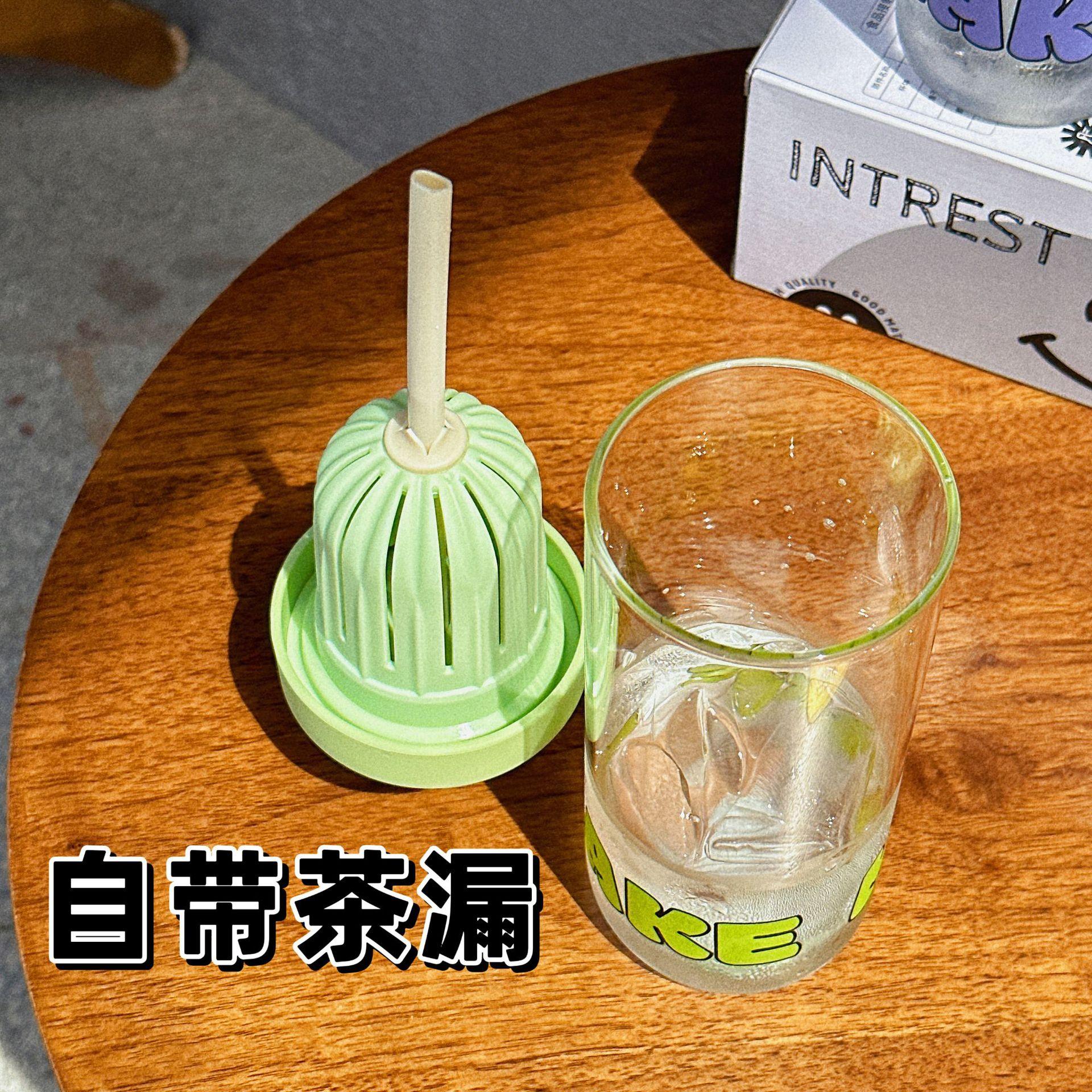 Taza de Té de Verano, Resistente a Altas Temperaturas, Vaso con Pajita para Escritorio con Filtro, Vaso de Vidrio Sencillo para Separación de Agua y Té para Bebidas Frías
