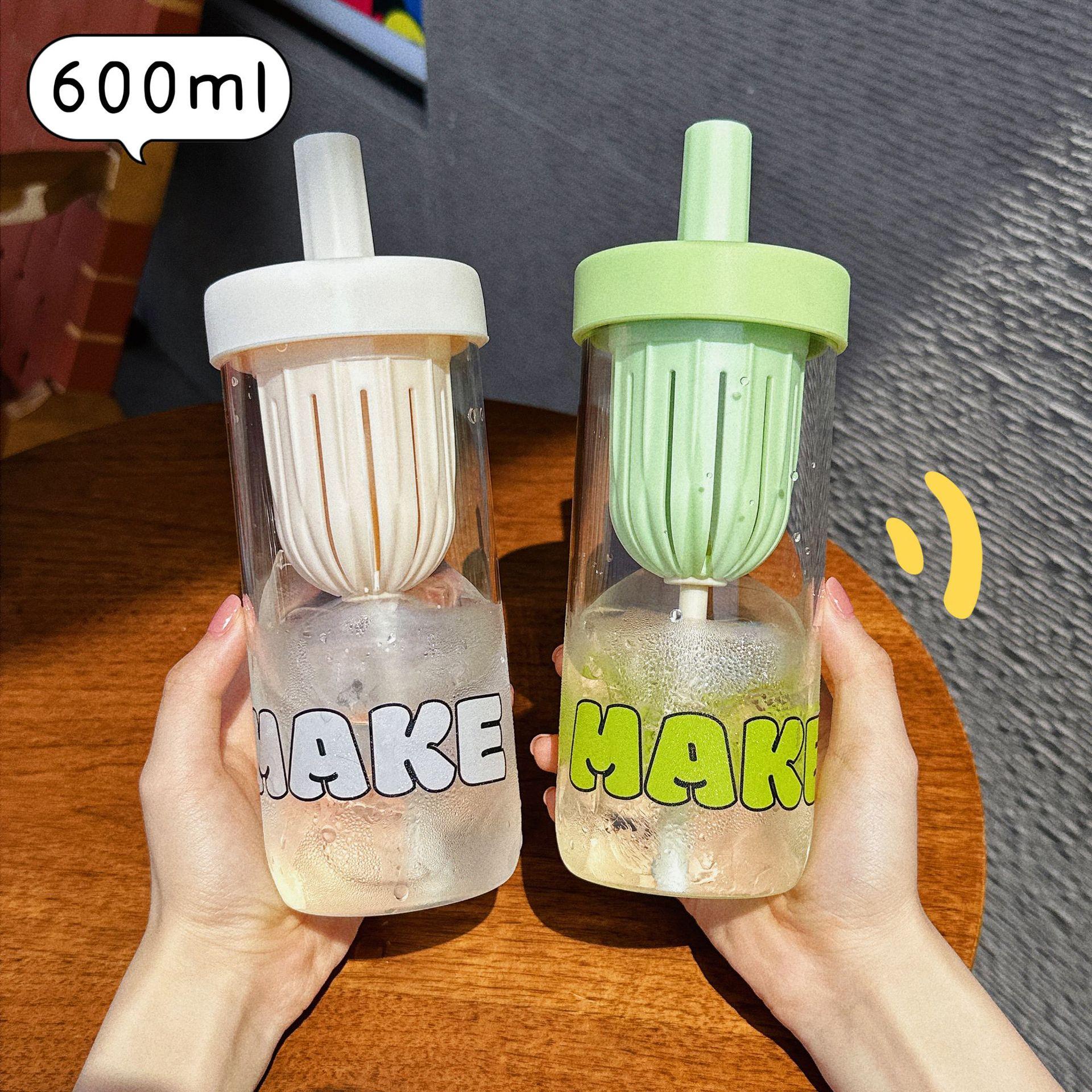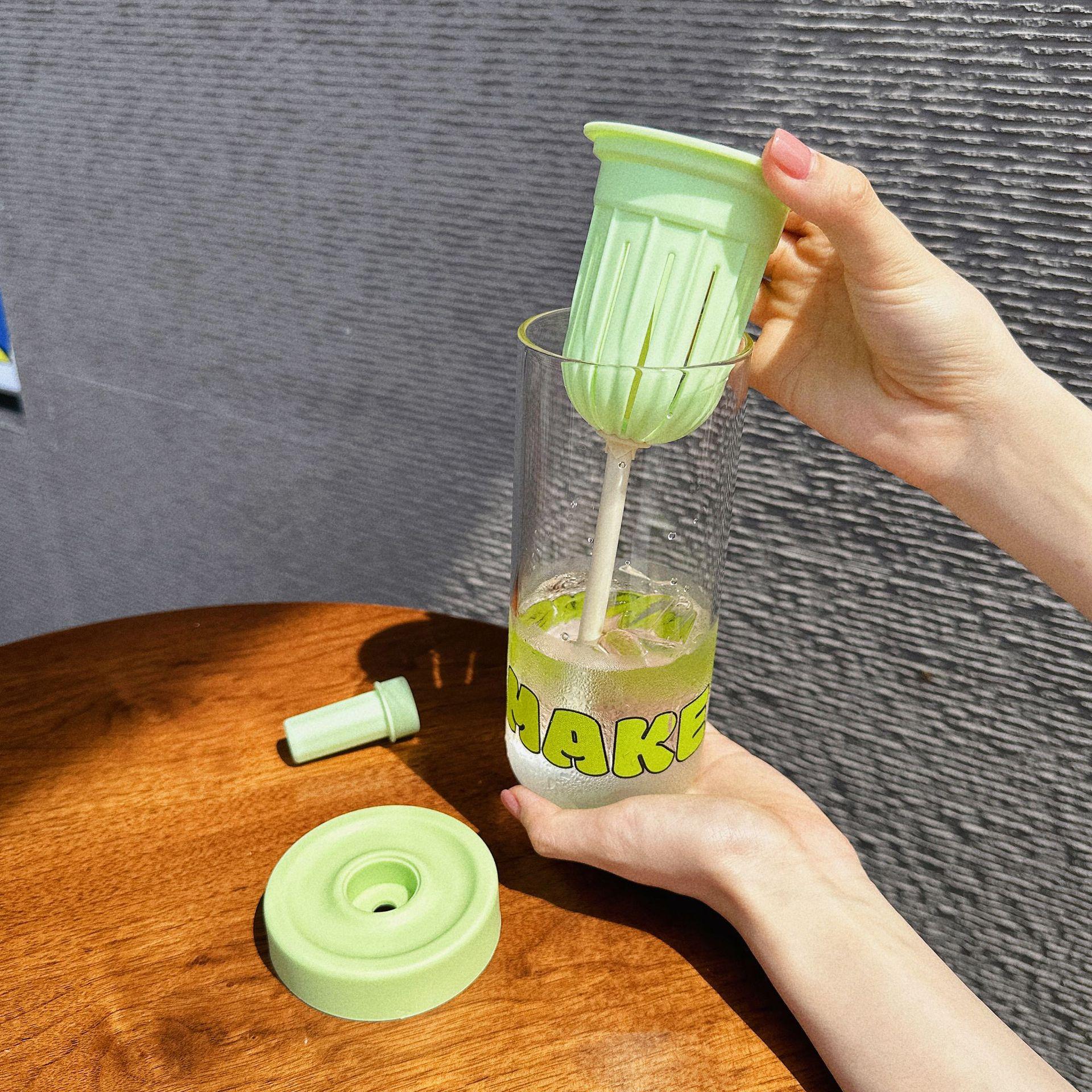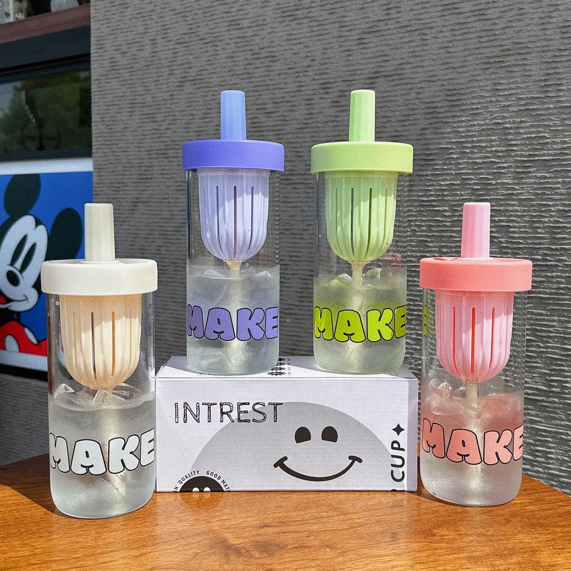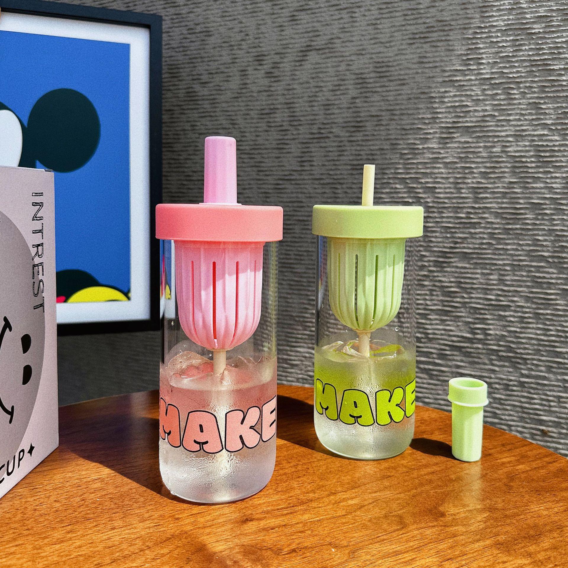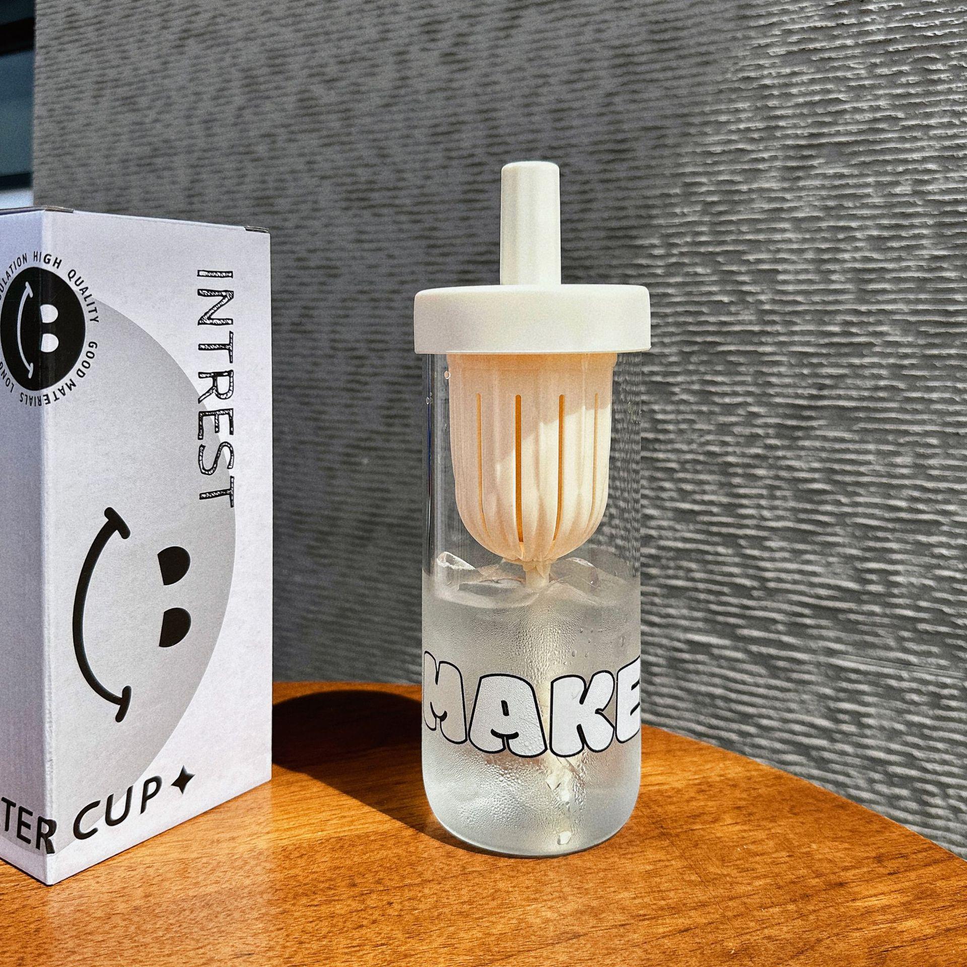 Taza de Té de Verano, Resistente a Altas Temperaturas, Vaso con Pajita para Escritorio con Filtro, Vaso de Vidrio Sencillo para Separación de Agua y Té para Bebidas Frías