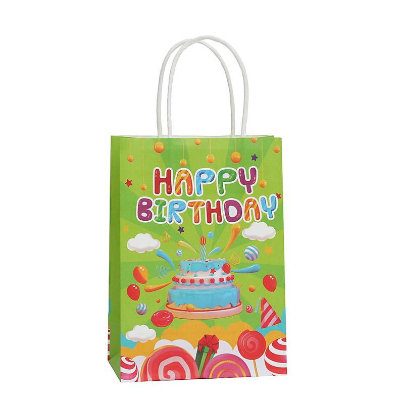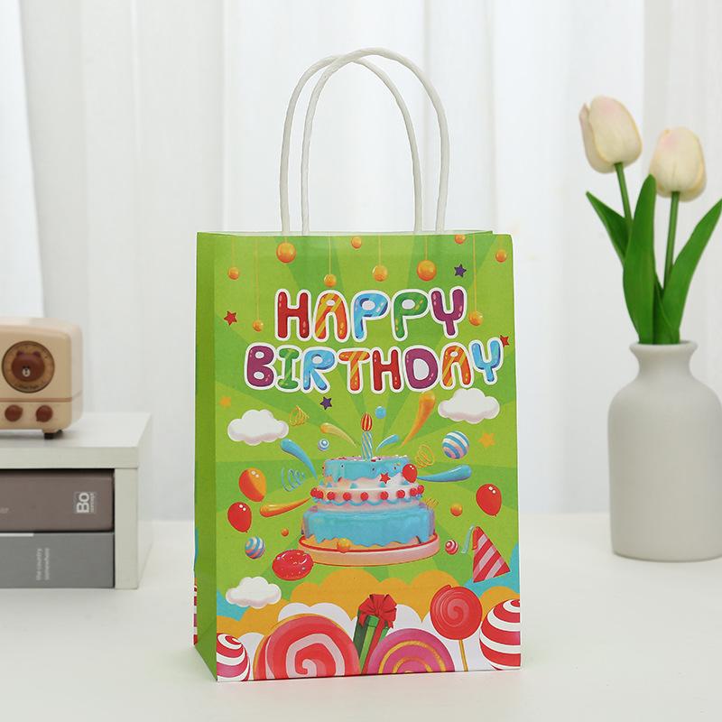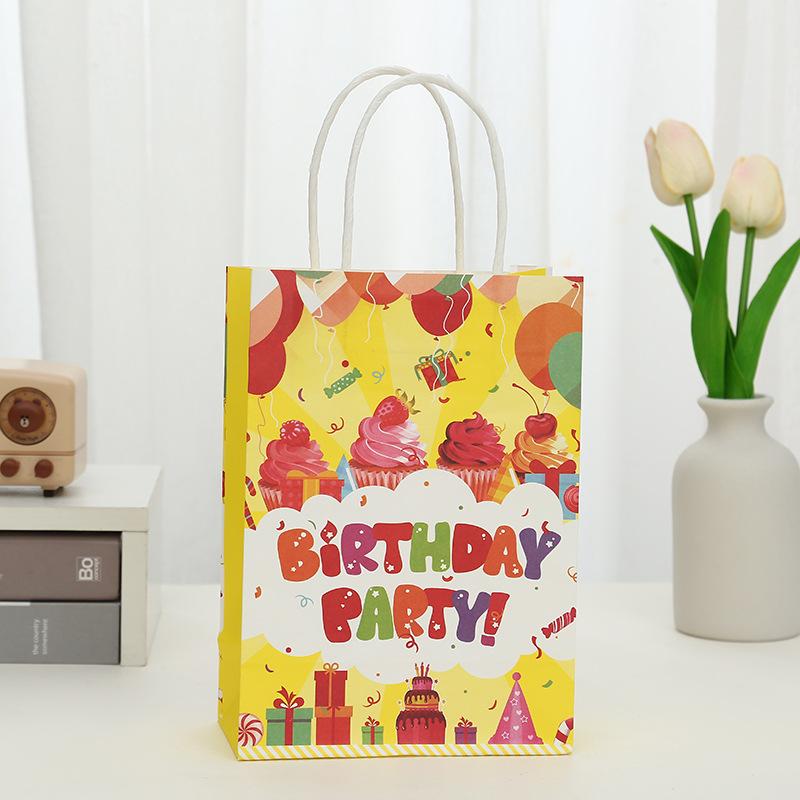 Serie creativa personalizada para fiesta de cumpleaños bolsa de papel kraft color bolso de ropa bolsa de embalaje de regalo impresa con dibujos animados