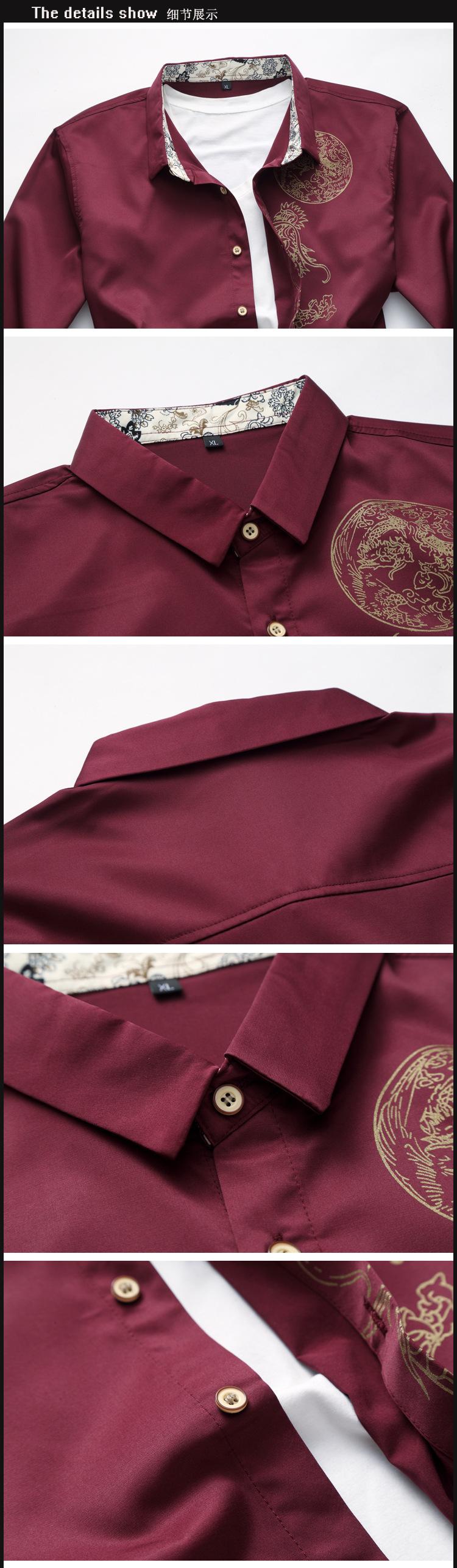 Camisa de Manga Larga Estampada para Hombre Nueva de Primavera y Otoño 2023 Talla Grande Estilo Chino Moderna Slim-fit con Solapa para Hombres Jóvenes