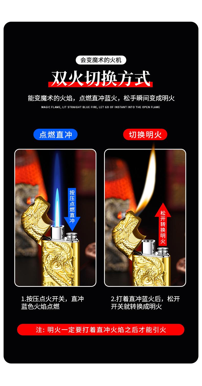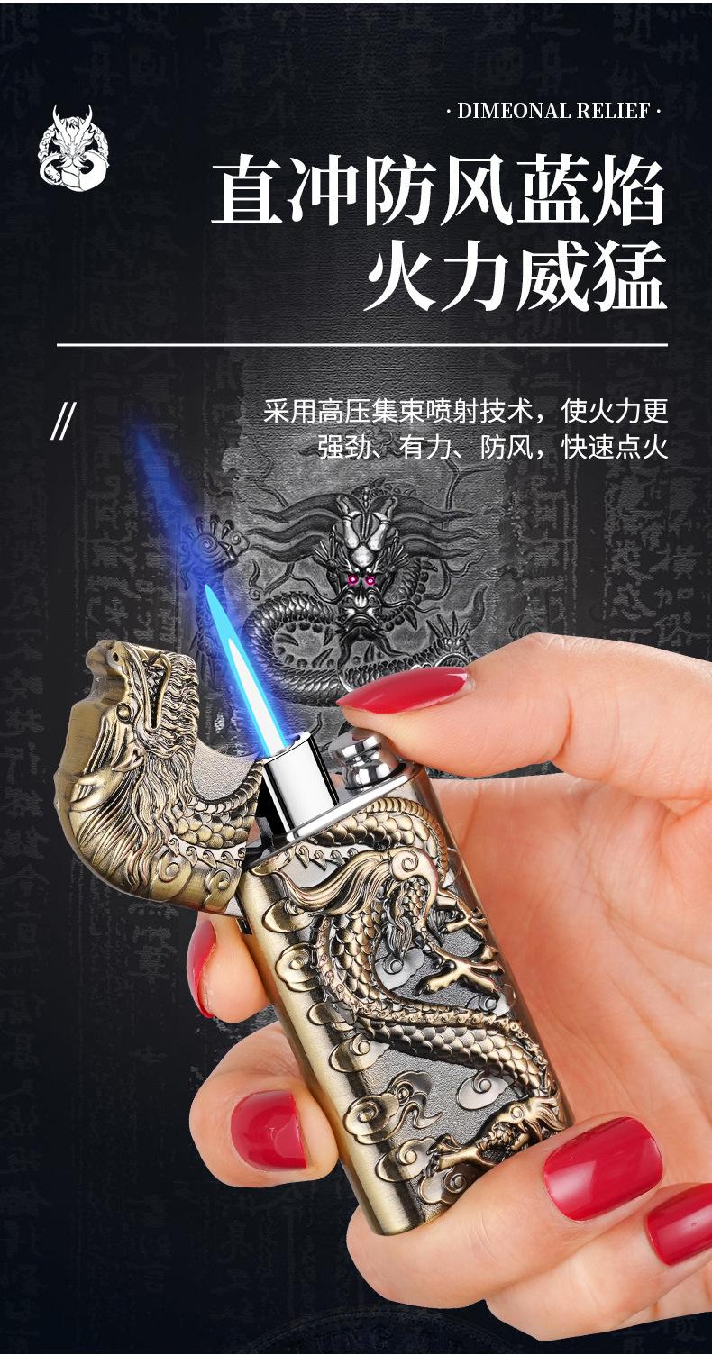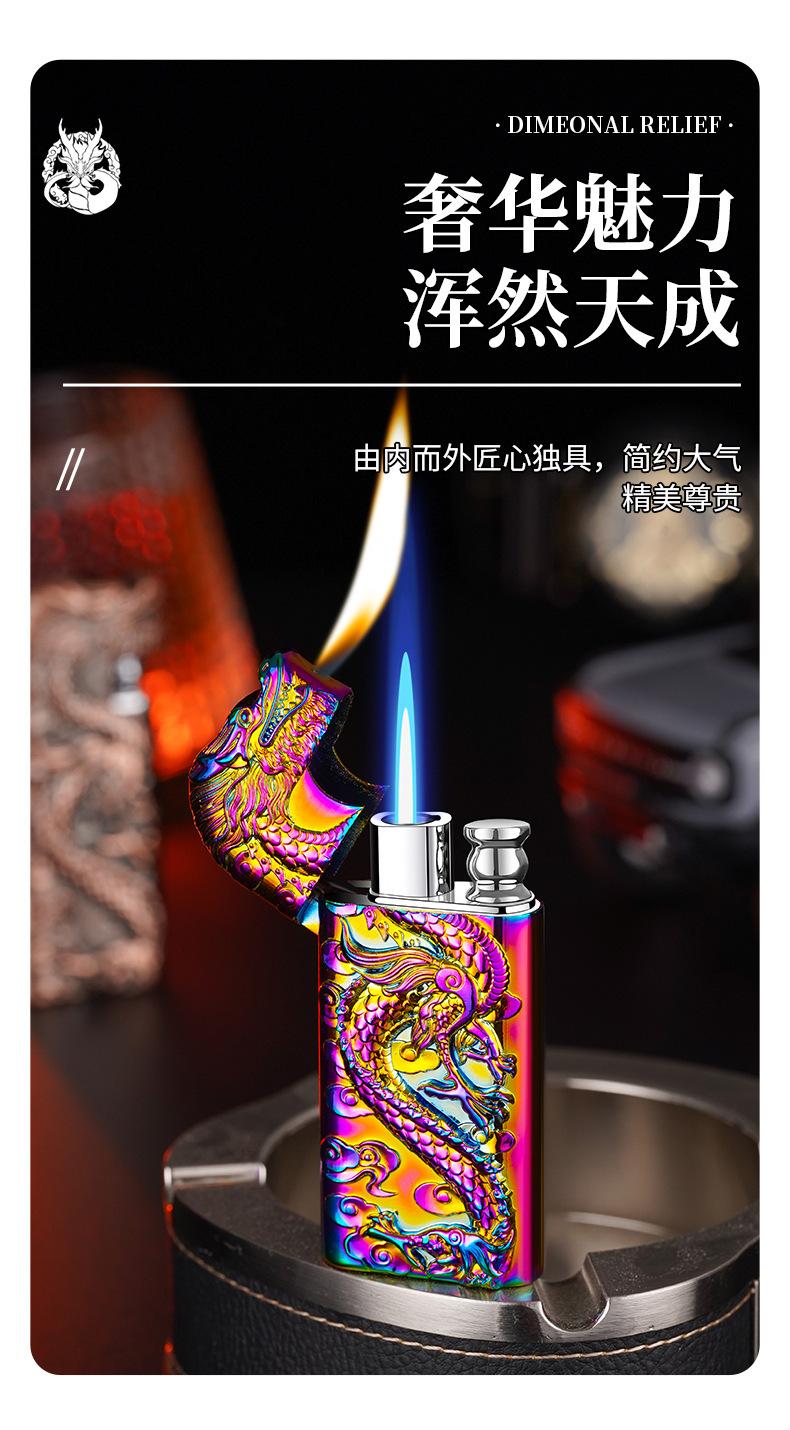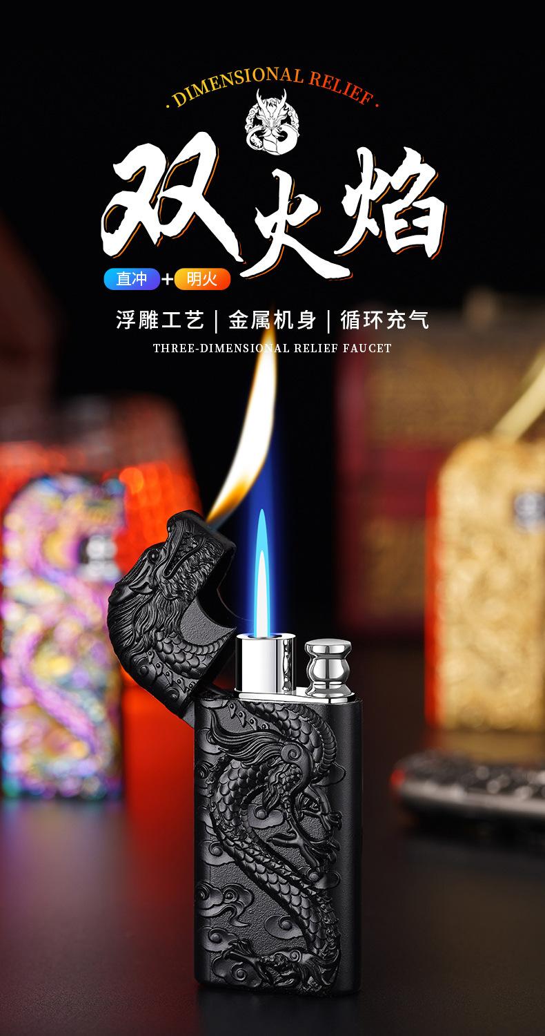 Encendedor inflable de fuego doble HB919 de conversión de perforación directa, fuego abierto, metal, relieve tridimensional, encendedor de dragón