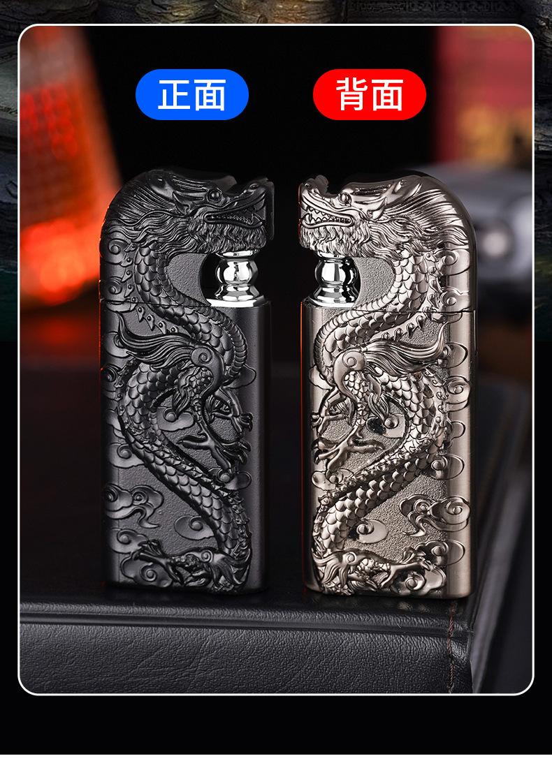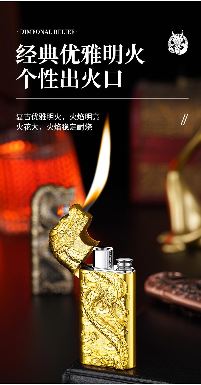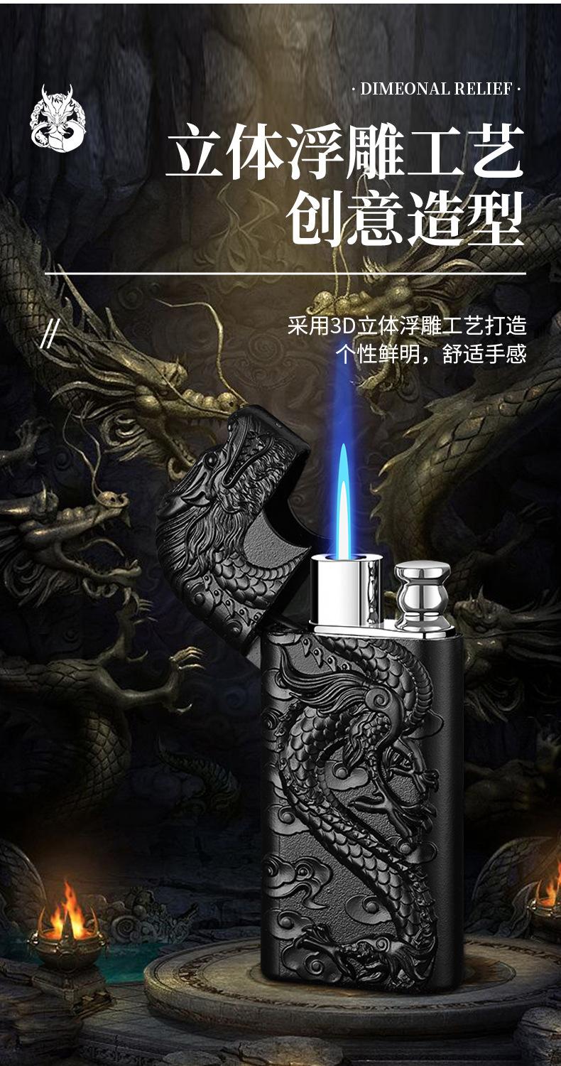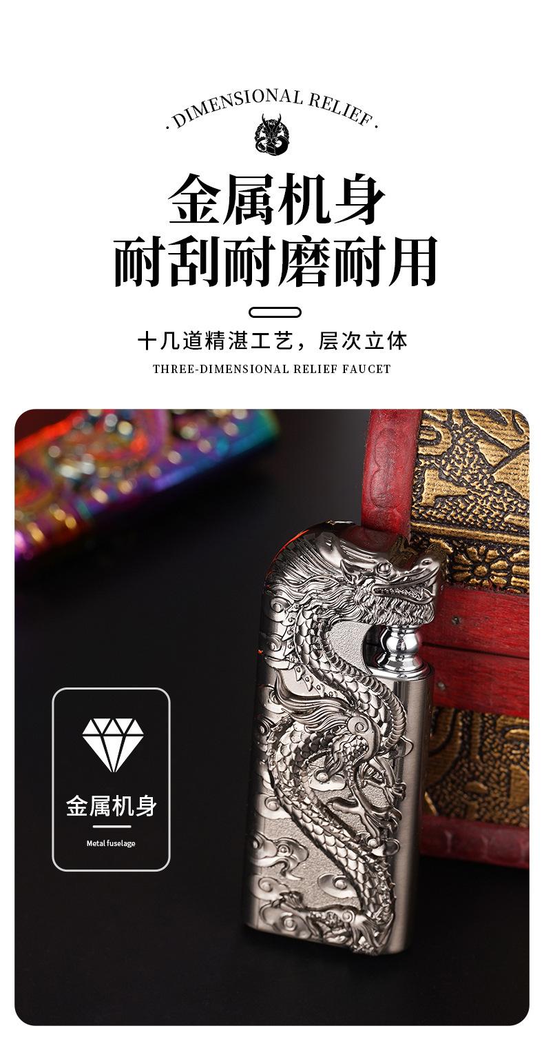 Encendedor inflable de fuego doble HB919 de conversión de perforación directa, fuego abierto, metal, relieve tridimensional, encendedor de dragón