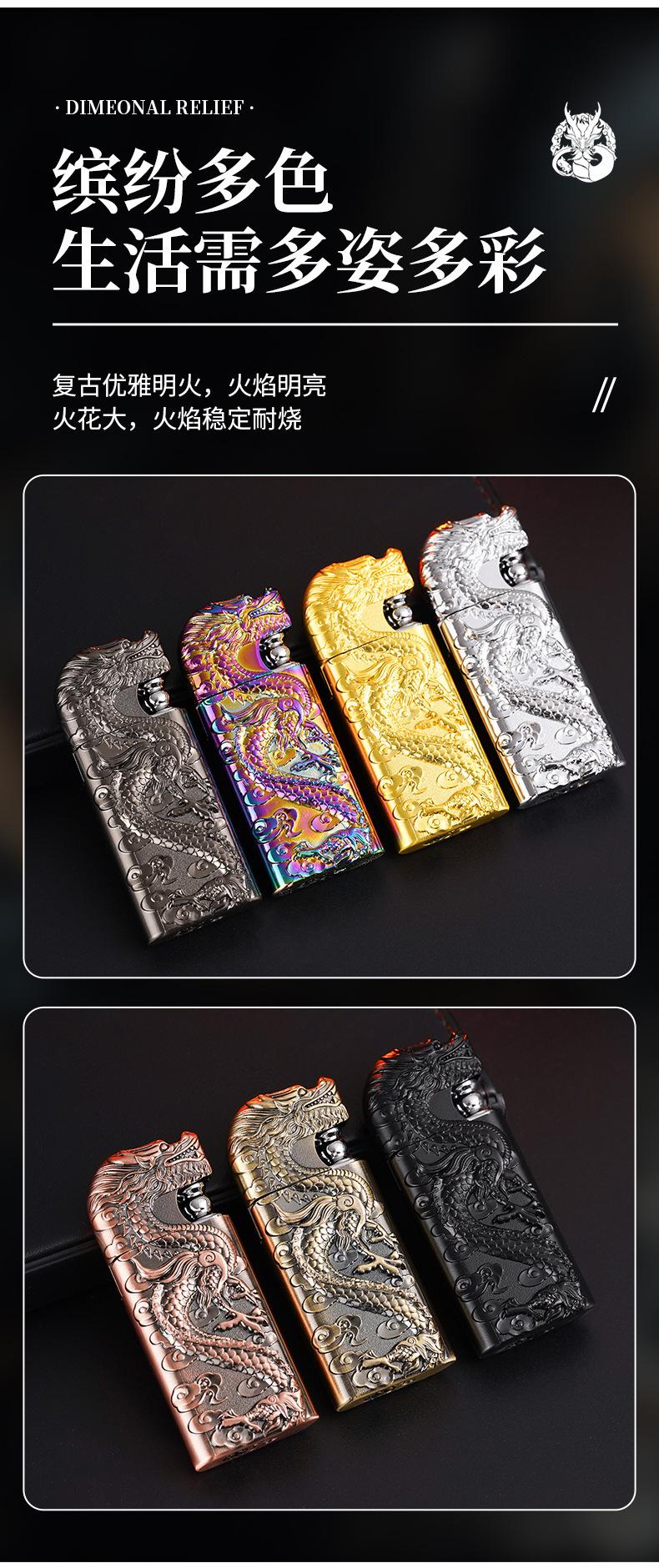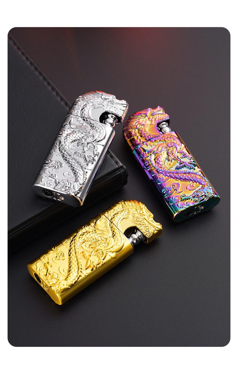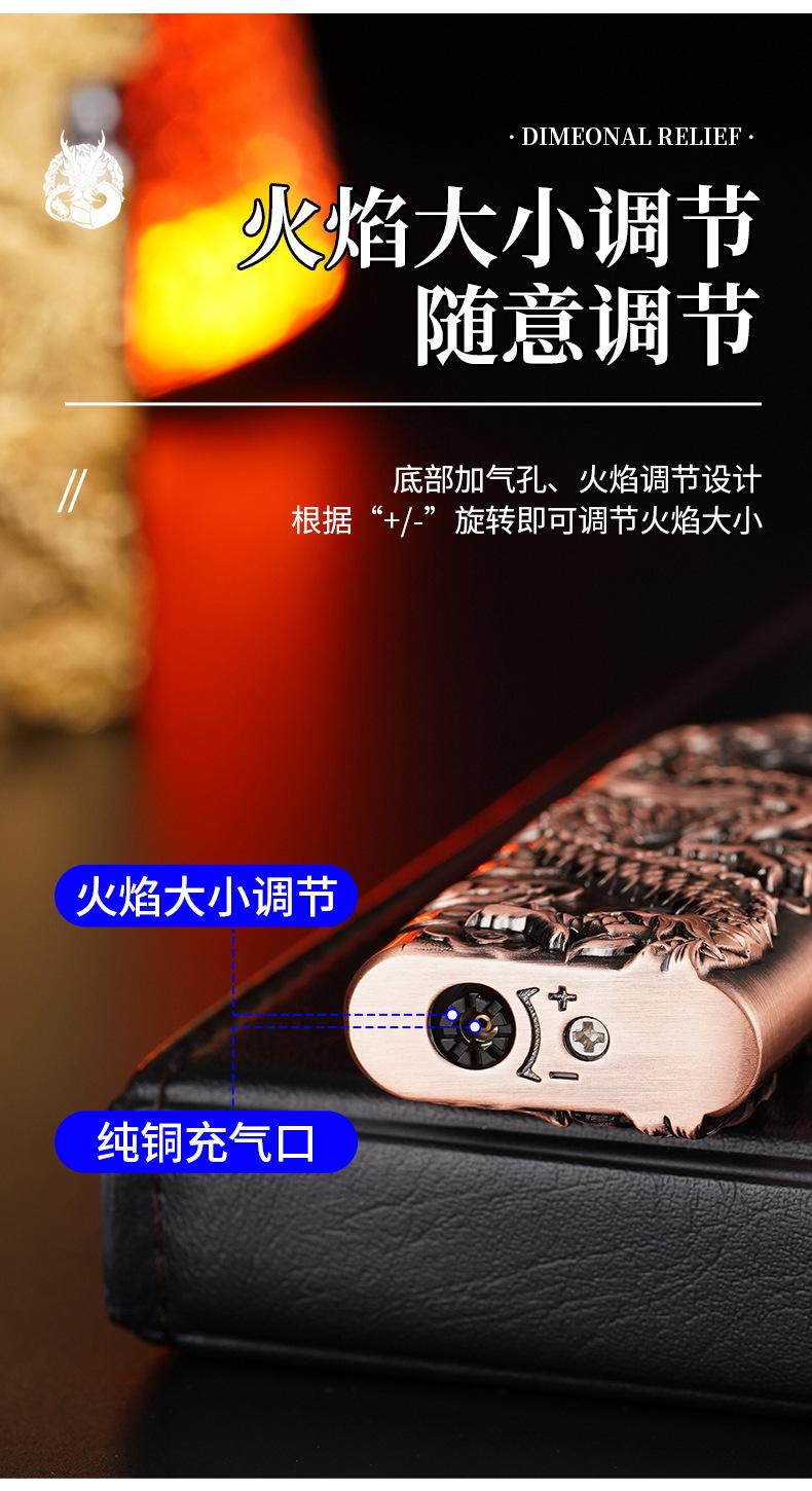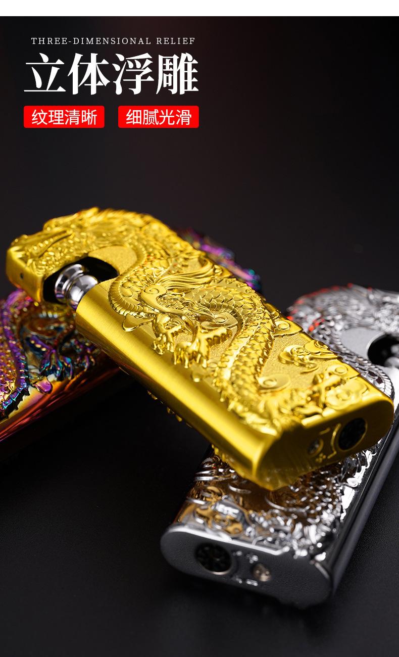 Encendedor inflable de fuego doble HB919 de conversión de perforación directa, fuego abierto, metal, relieve tridimensional, encendedor de dragón
