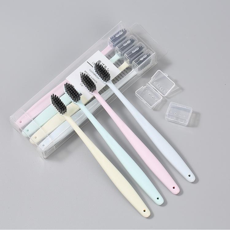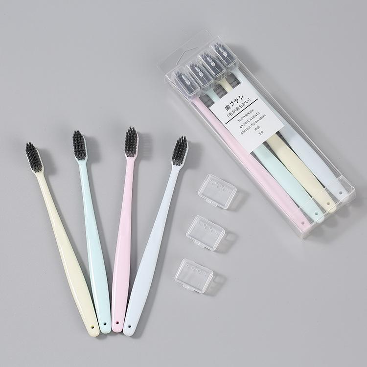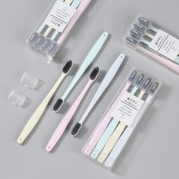 Paquete de 4 Cepillos de Dientes de Viaje en Espera para Adultos Estilo Japonés Buen Color Liso Cubierta Protectora para Cinturón Cabeza Pequeña Cerdas Medias Suaves