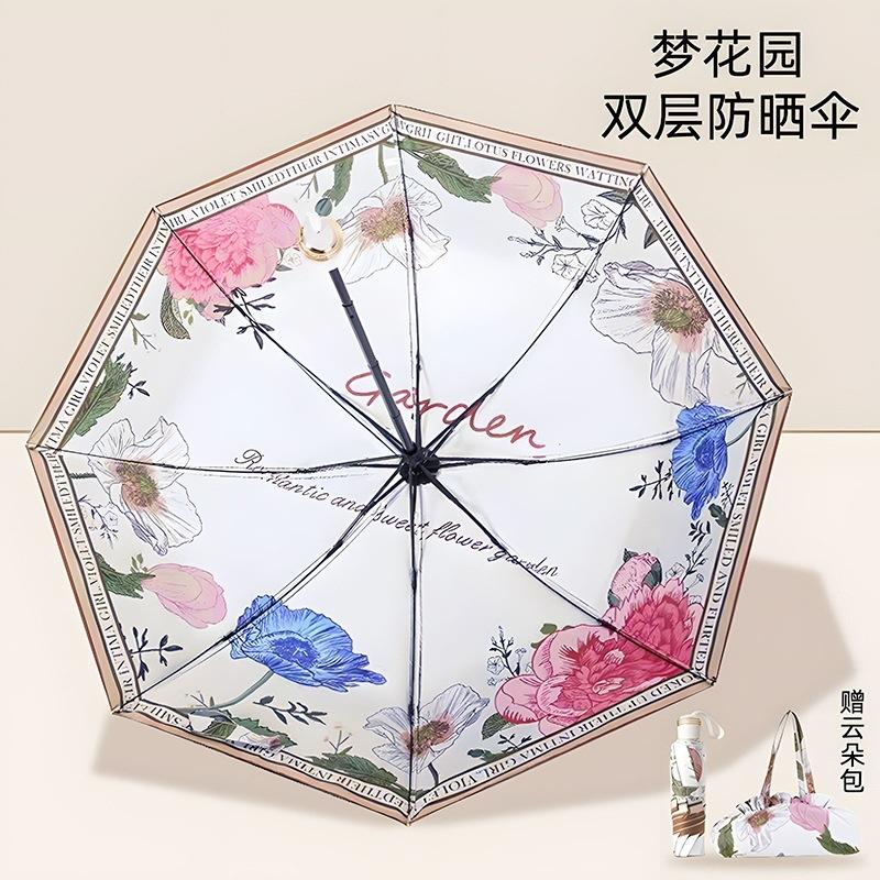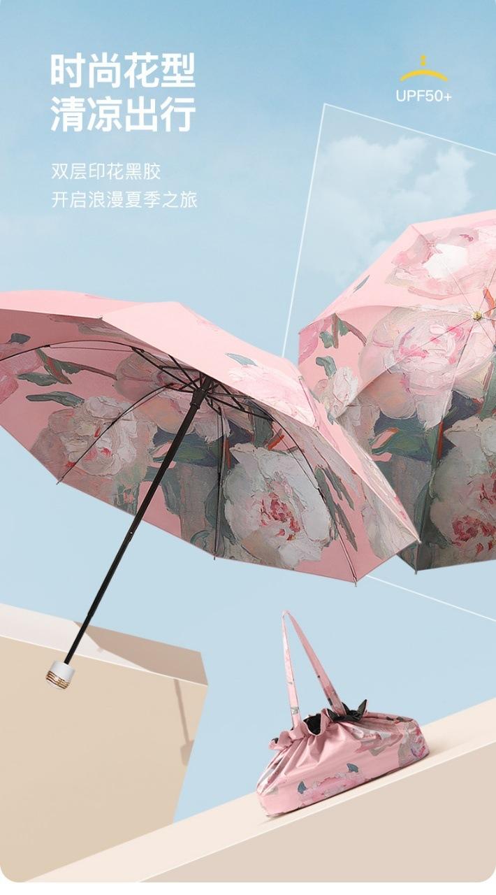 Three-fold umbrella 8 ribs pink peony, Three-fold umbrella 8 ribs white rose, Three-fold umbrella 8 ribs Dream...