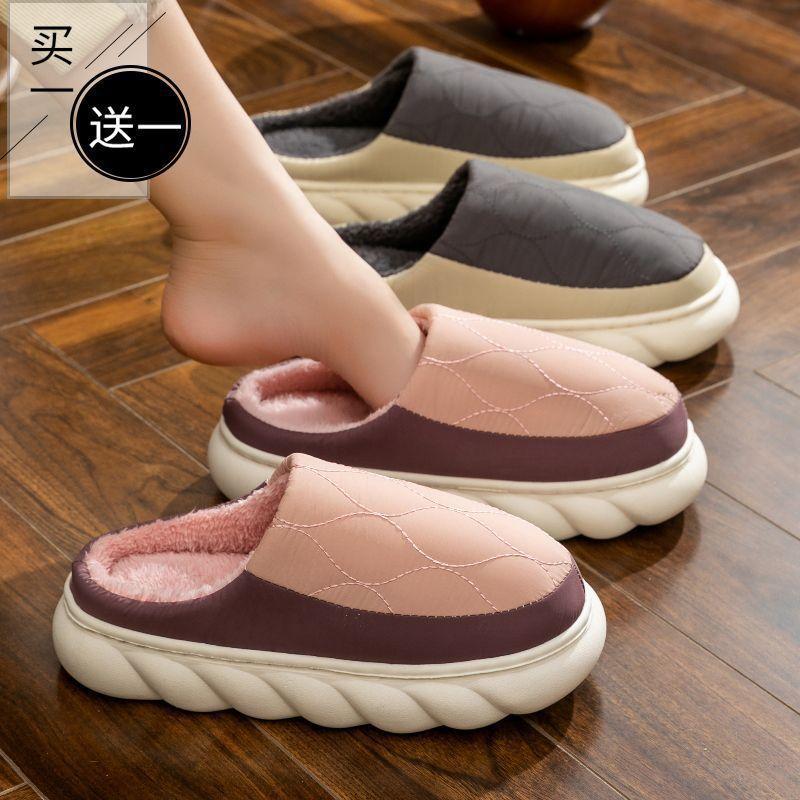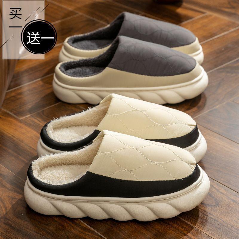 Compra Uno Lleva Uno Gratis Pantuflas de Algodón Impermeables para Mujer Otoño e Invierno 2024 Nuevas para Interior Hogar Suela Gruesa Antideslizantes Cálidas para Hombre