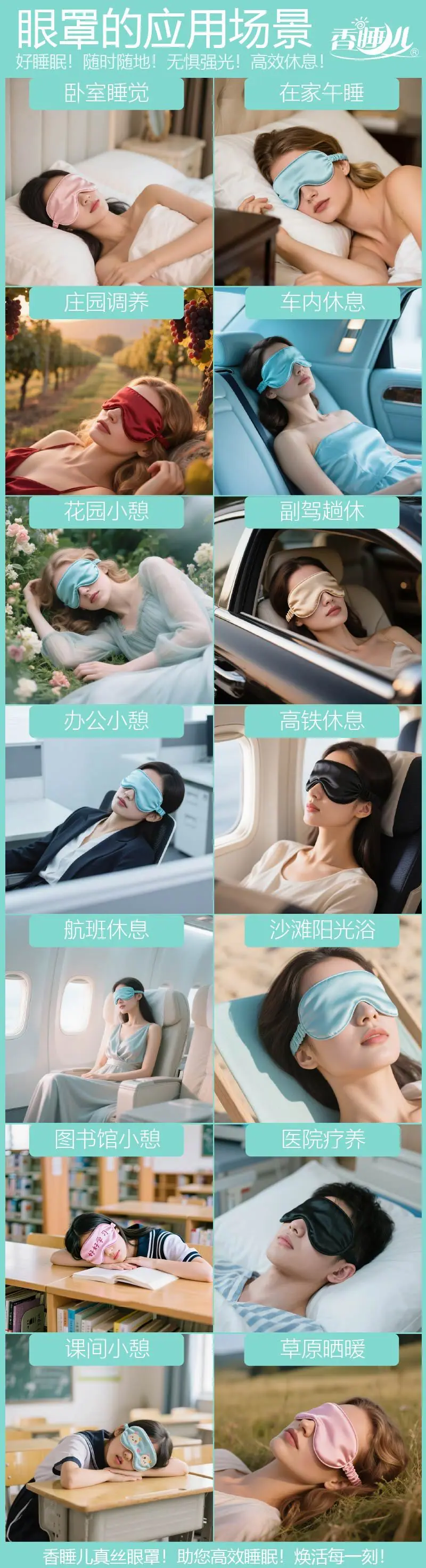 Antifaz 100% Seda Color Puro Seda de Morera Doble Cara para Dormir Sombreado Fatiga Ocular Delgada Fabricante de Antifaces Personalizados
