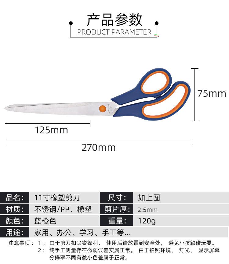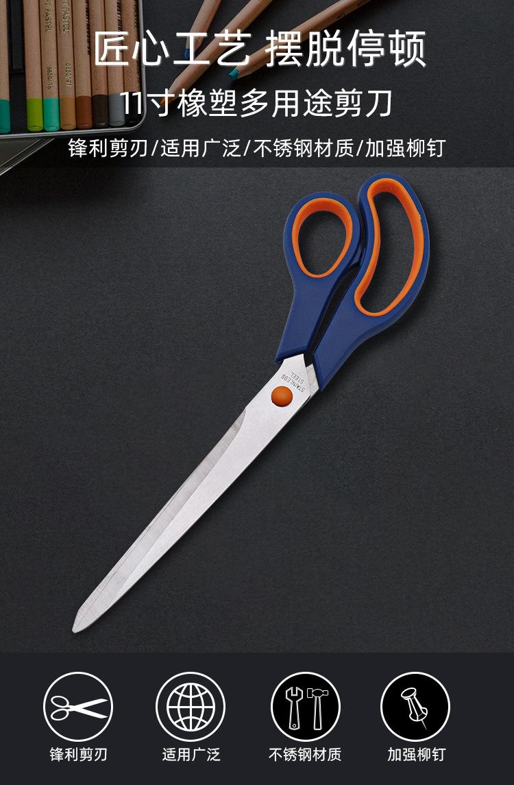 Procesamiento personalizado corte de tela de acero inoxidable tijeras de sastre para ropa de hogar multiusos 11 pulgadas tijeras de goma y plástico