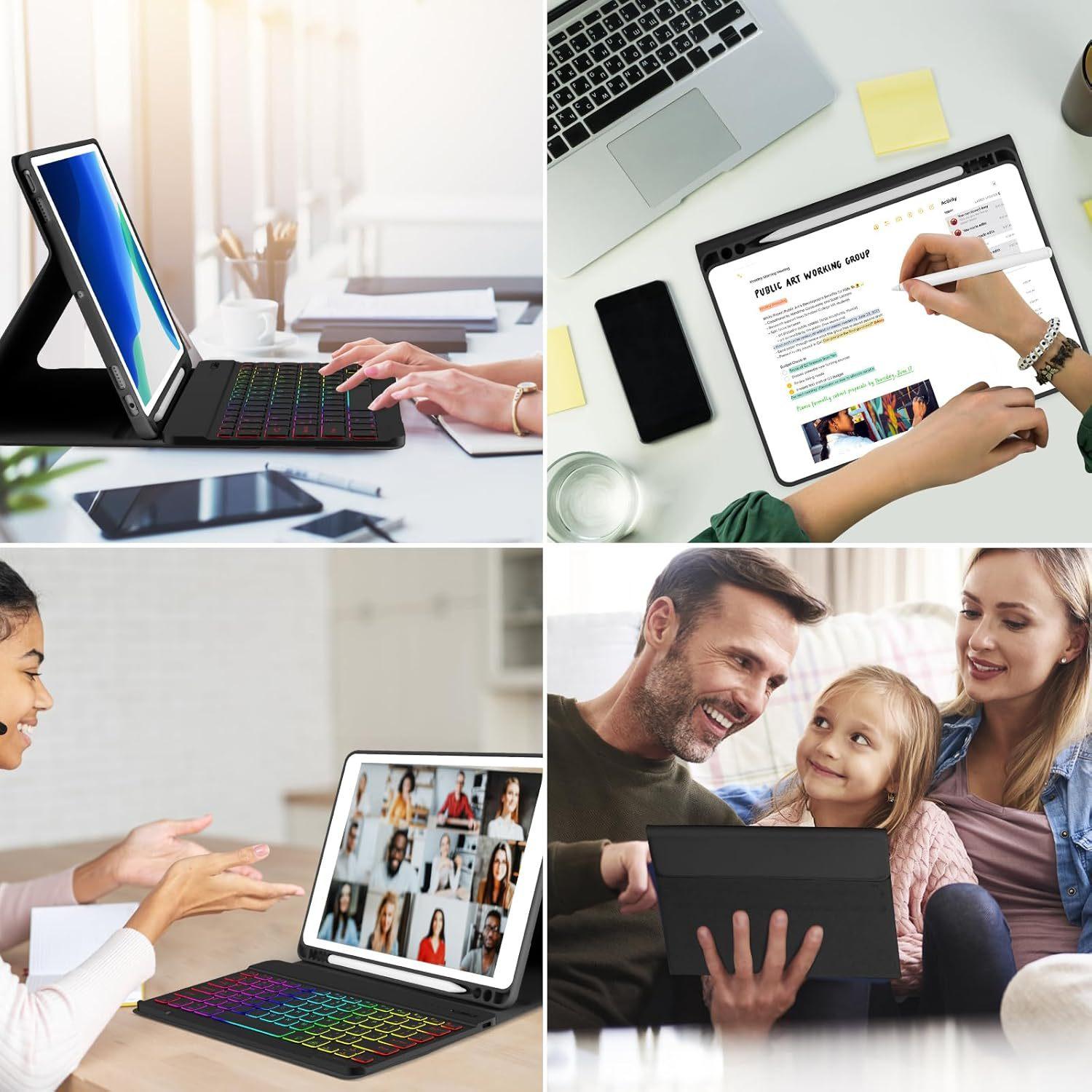 Funda Protectora para Teclado Bluetooth Adecuada para Samsung A9+ Retroiluminada Tricolor Desmontable Galaxy Teclado Magnético Estuche de Cuero