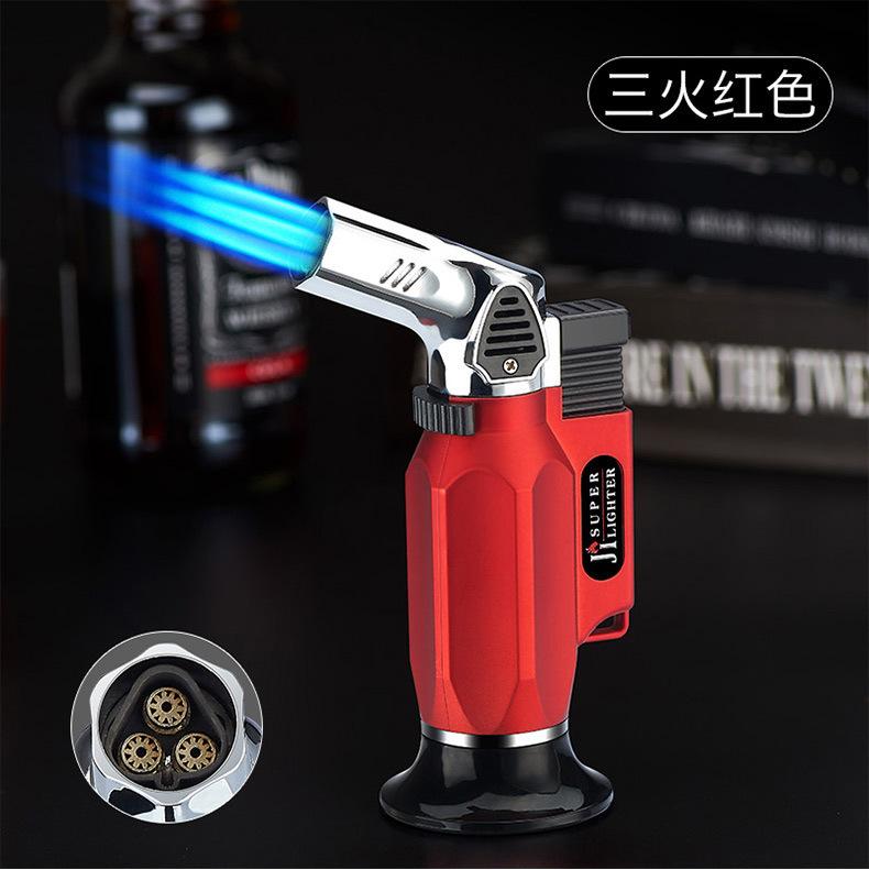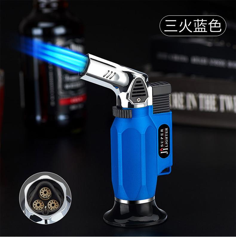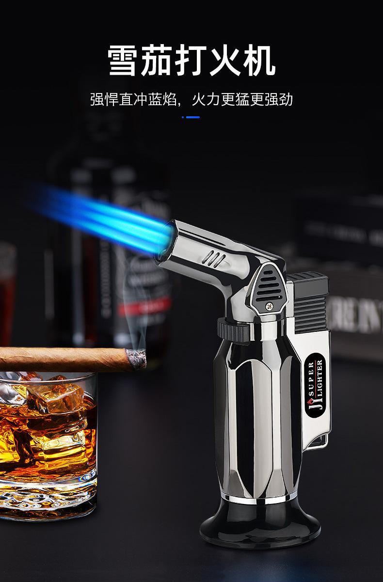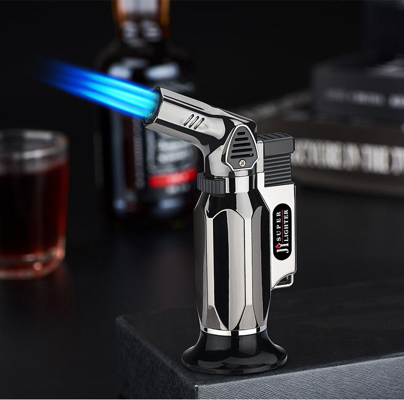 Fábrica al por mayor, a prueba de viento, pistola rociadora directa, personalidad, cocina al aire libre, horneado, llama azul, encendedor de cigarros inflable de metal