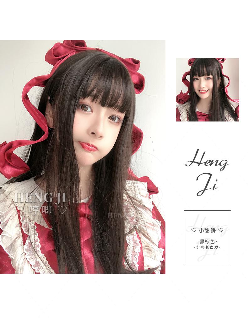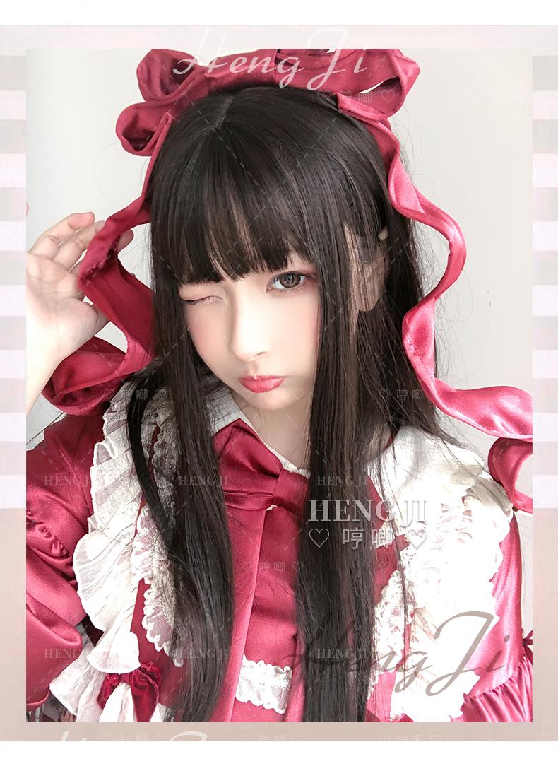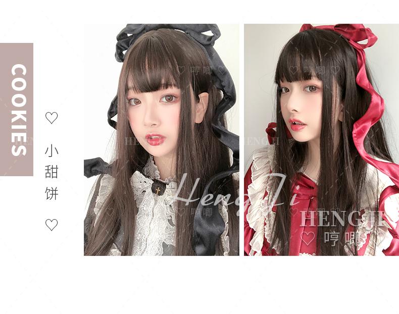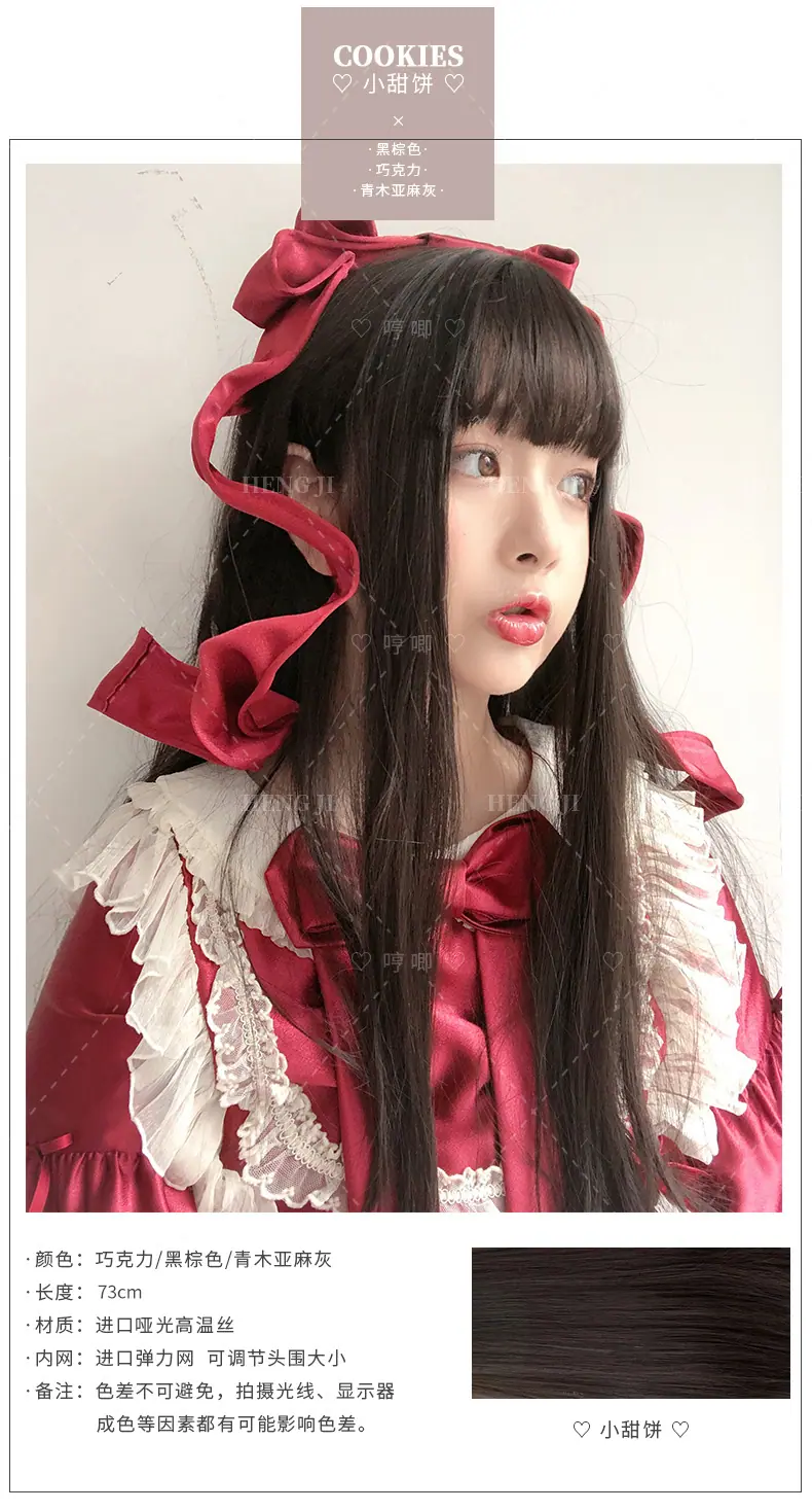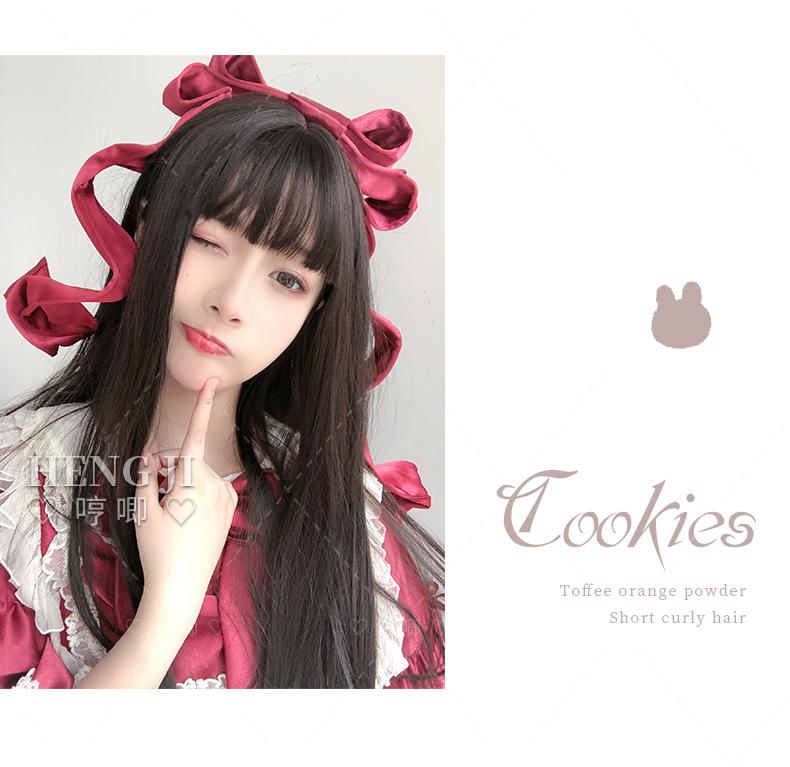 Set de peluca lolita al por mayor para mujer, cabello largo, cabello lacio largo, lolita, rojo de internet, antigua, natural, niña, galletas