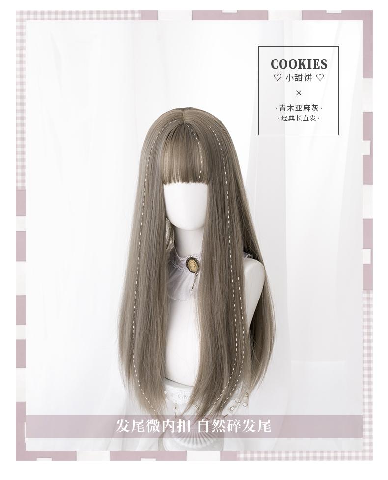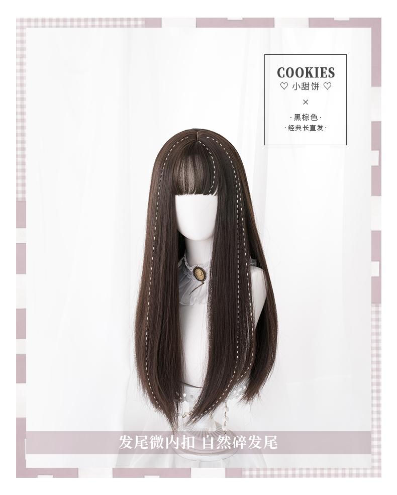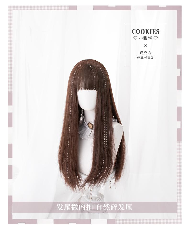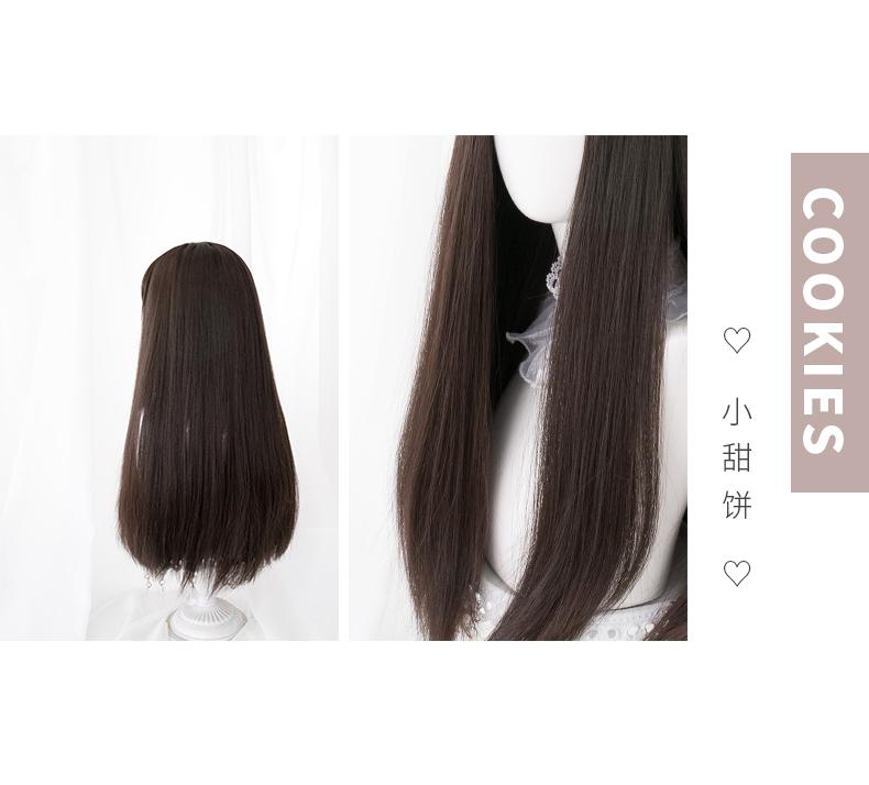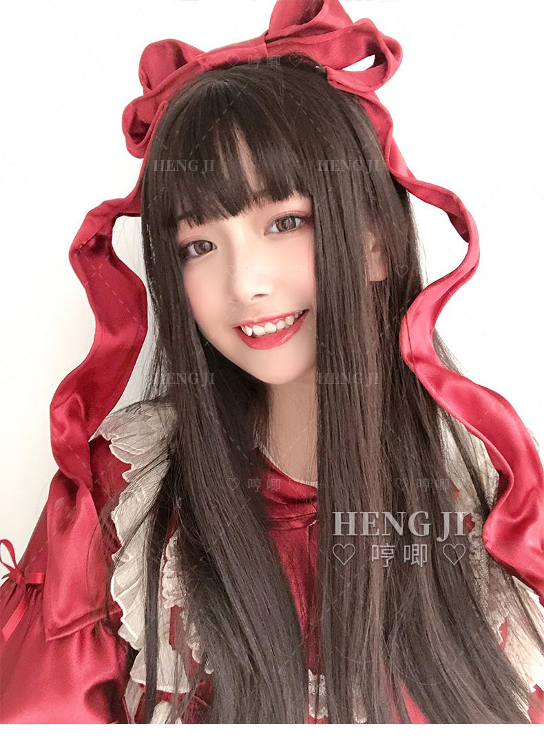 Set de peluca lolita al por mayor para mujer, cabello largo, cabello lacio largo, lolita, rojo de internet, antigua, natural, niña, galletas