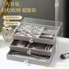 Caja de Almacenamiento de Joyas de Terciopelo Transparente de Tres Capas Caja para Guardar Aretes Caja Cajón Multifuncional a Prueba de Polvo para Joyas