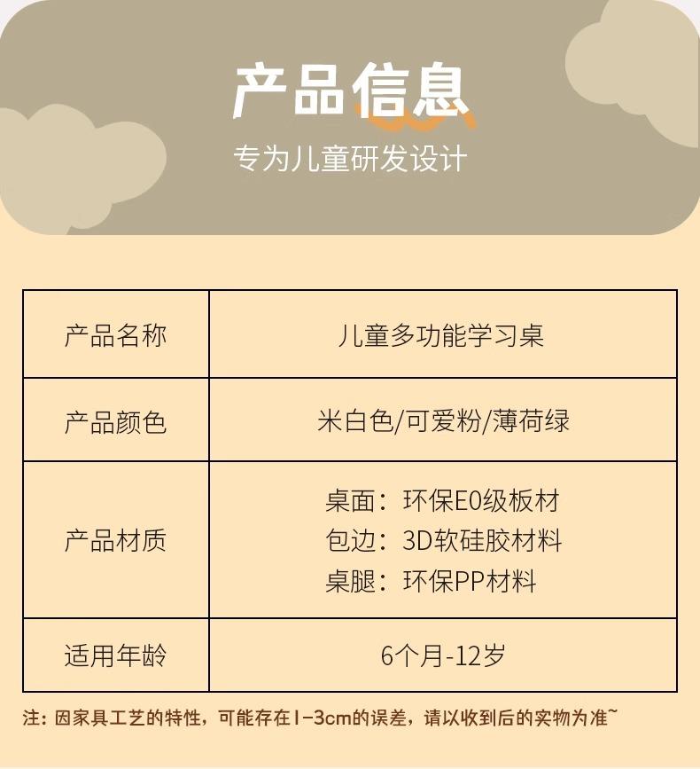 Cute pink peanut table-widened and thickened table top (height 28-55cm)