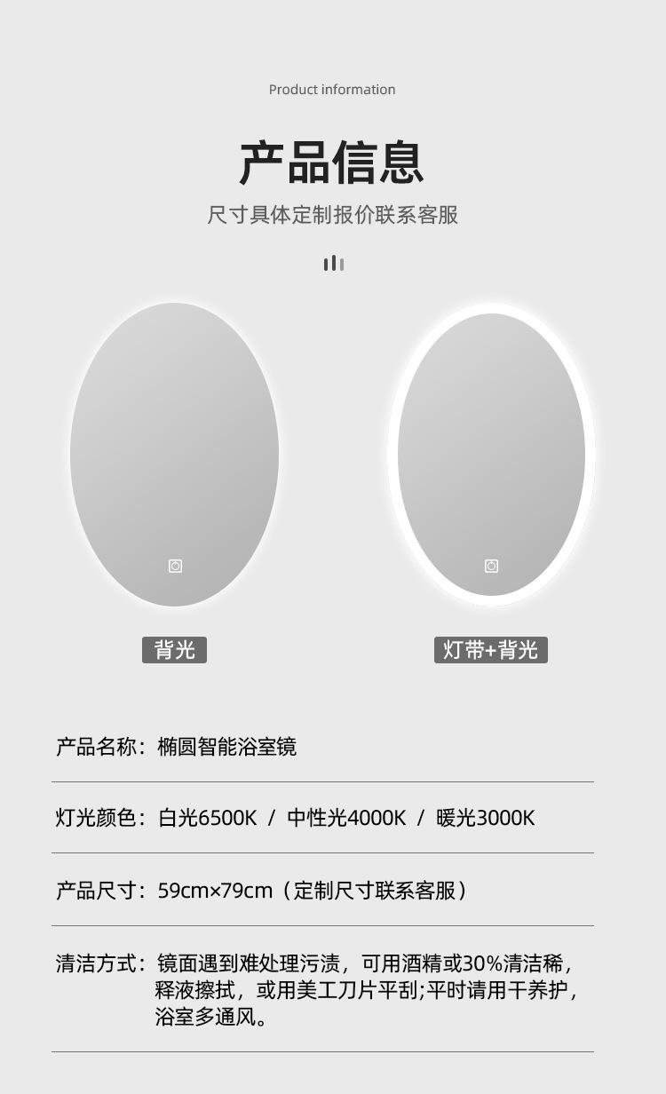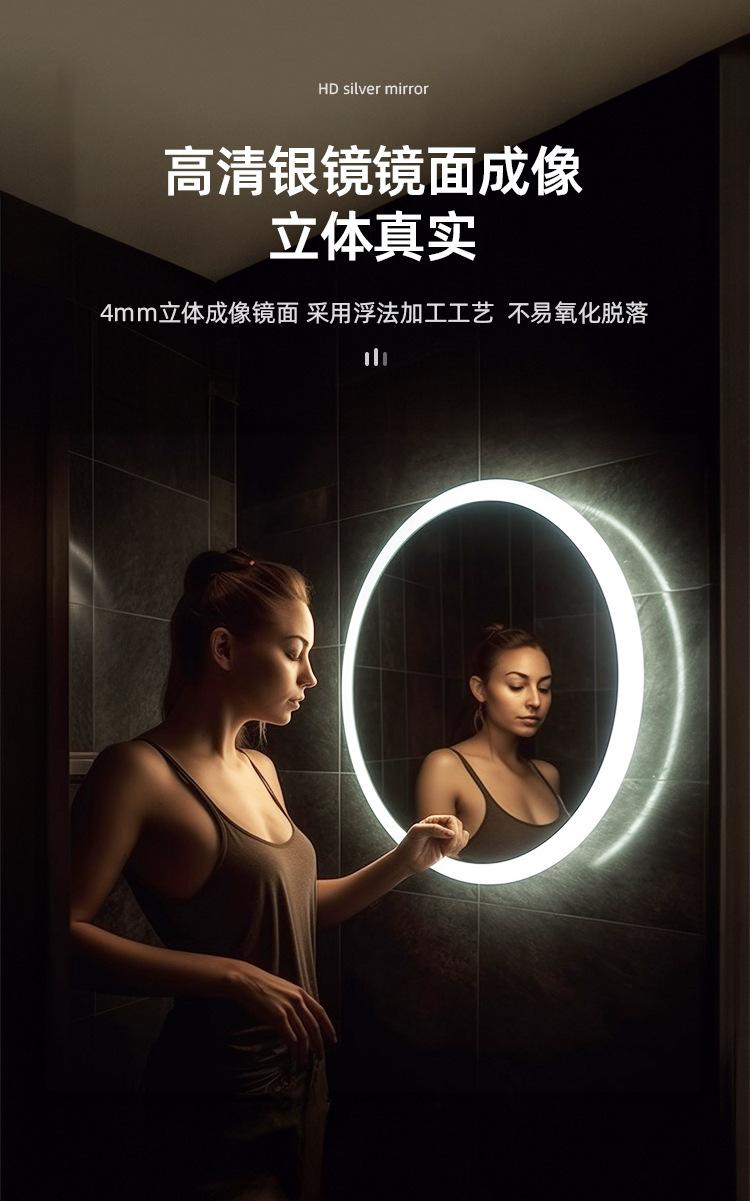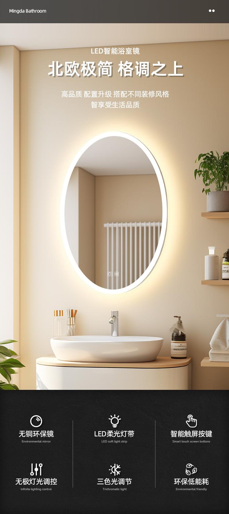 Suministro Transfronterizo de Espejo Ovalado LED Inteligente para Vanidad de Baño, Montado en la Pared, con Conexión Táctil, Bluetooth y Desempañador