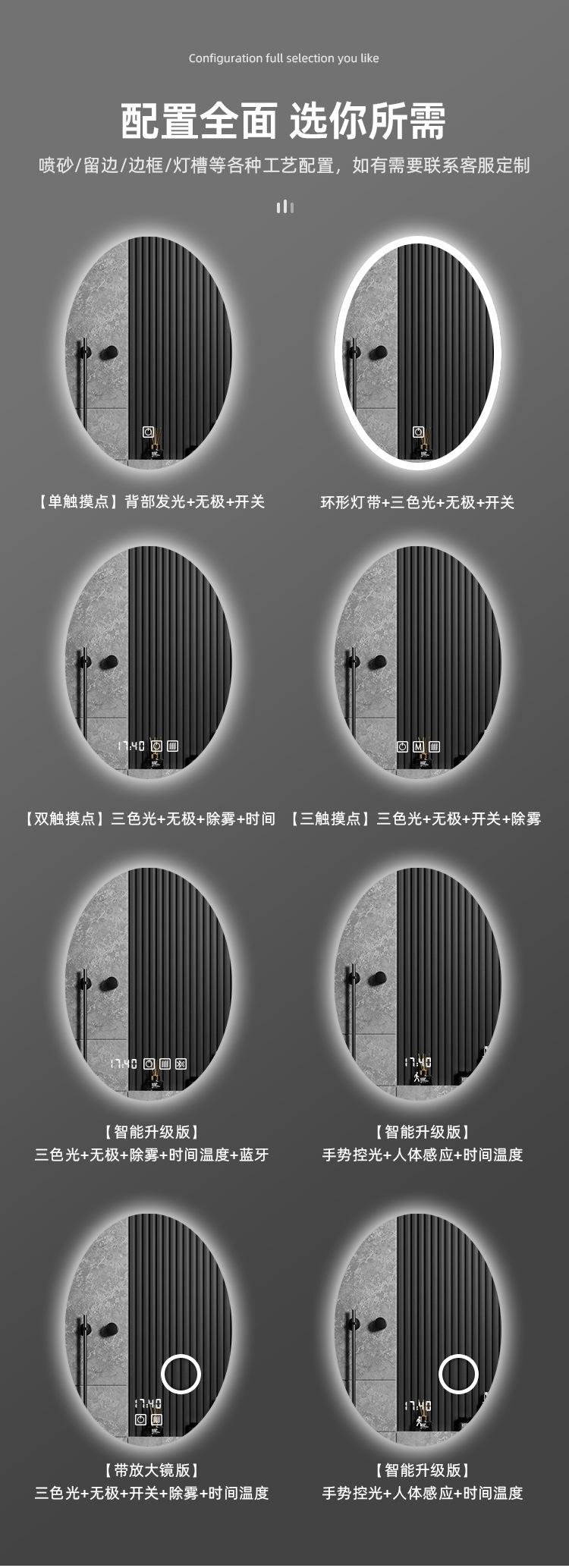 Single touch, Double touch, Defogging + radar induction, Defogging + time temperature + radar sensor, Defoggin...