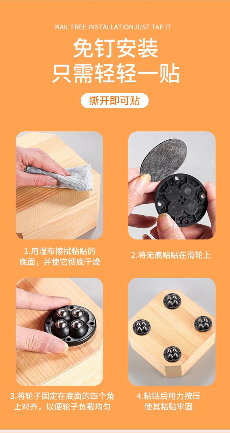 Polea Adhesiva, Bola de Acero sin Perforaciones, Bola de Nailon, Rueda para Muebles, Mini Rueda Universal Silenciosa, Rueda Pequeña para el Hogar